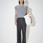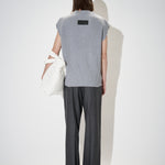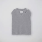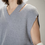 The Deconstructed V-Neck Knitted Vest is made of a compact cotton/wool yarn, finished with handmade raw details at the hem, distressed hole at the neckline and displaying the branded leather patch in the upper center back.
