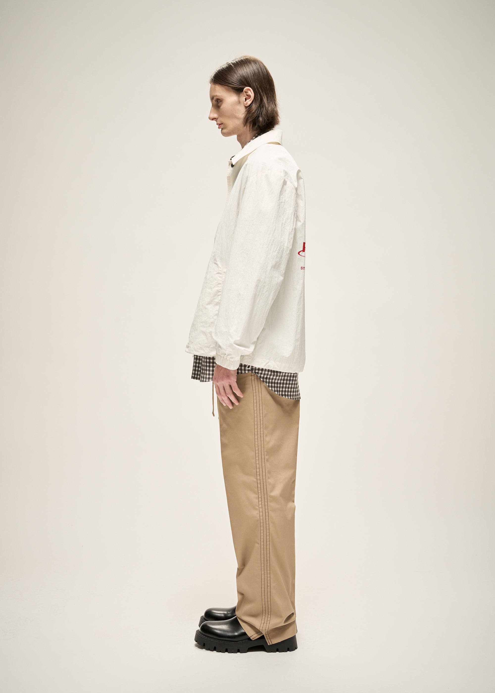 The Nylon Coach Jacket is crafted from lightweight nylon lined with a technical mesh. The nylon fabric is finished with PFC-free water-repellent treatment to allow for sustained wear in wet weather.