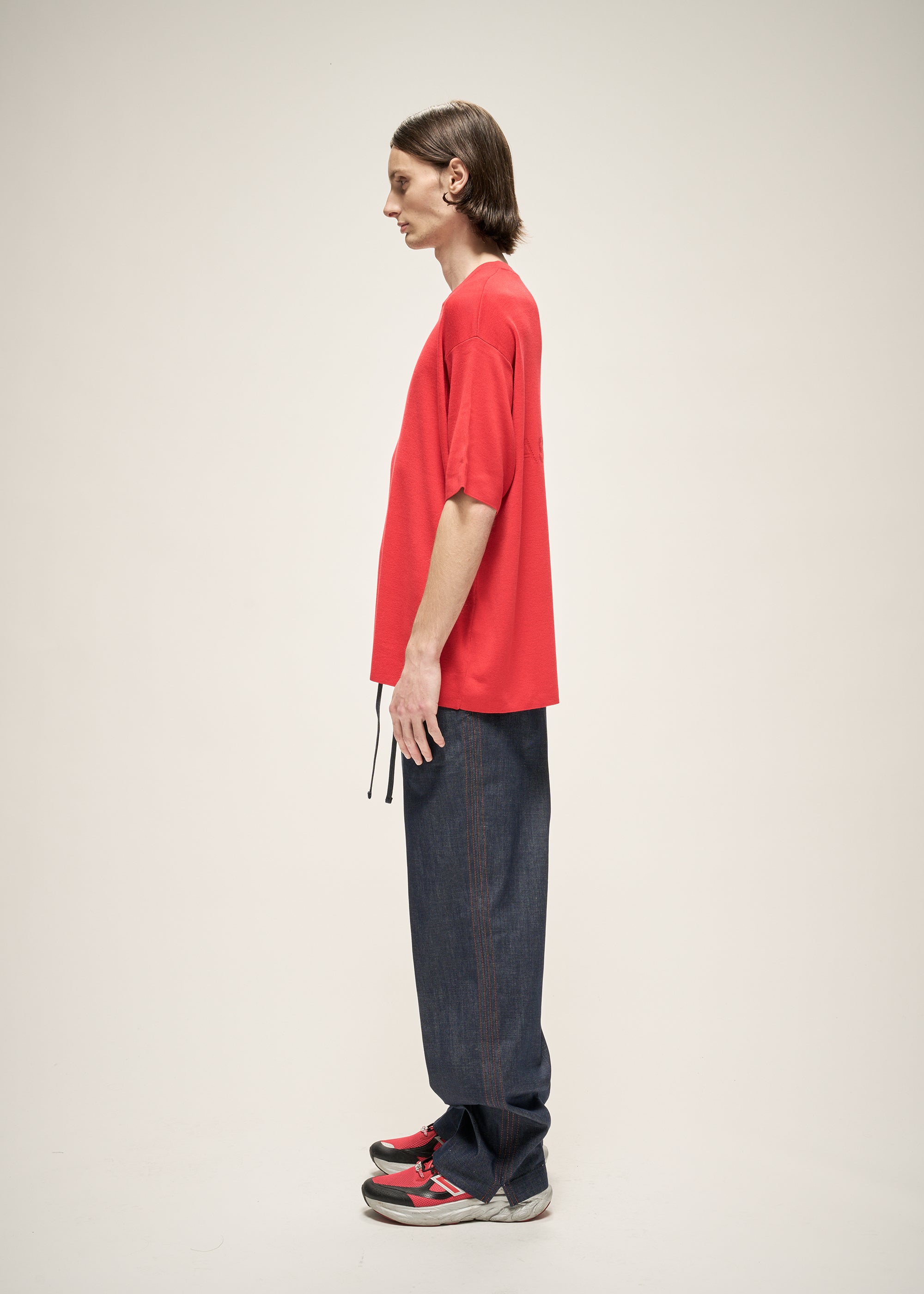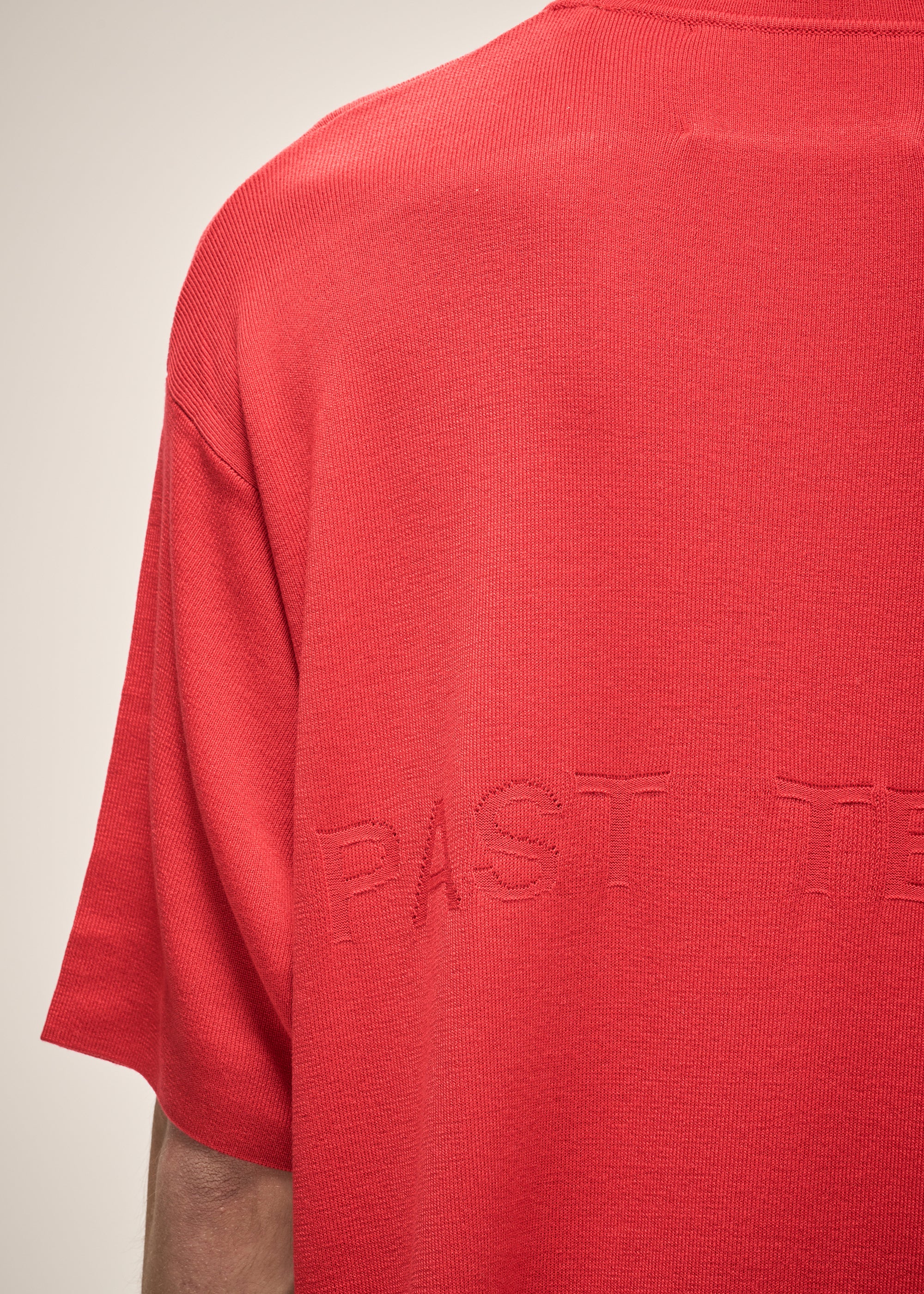 The Milano Knit Crewneck T-Shirt is crafted from a blend of Silk, Wool, and Tencel yarn, featuring a front chest P–T embroidery and showcasing the brand logo intarsia knitted across the centre back.