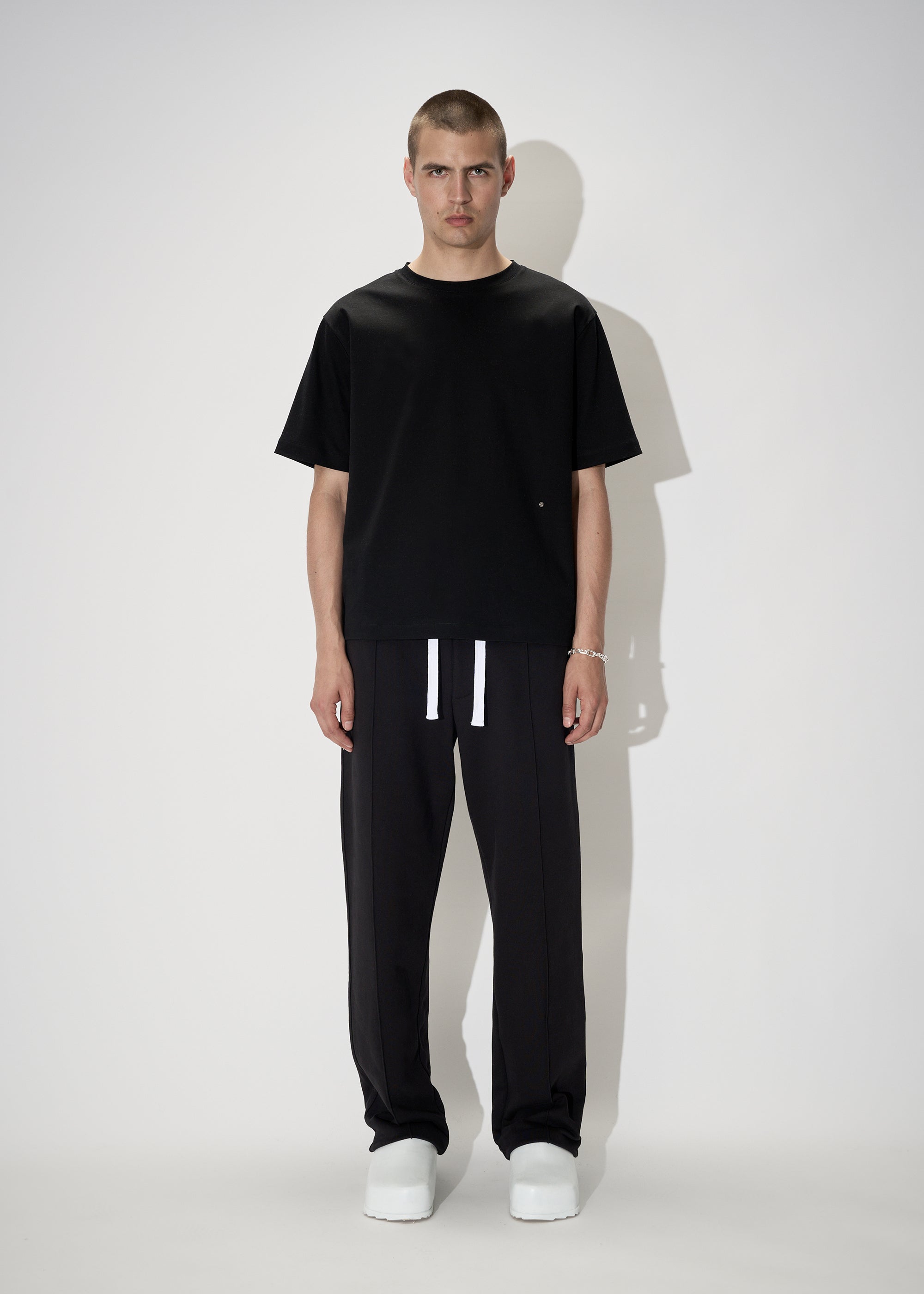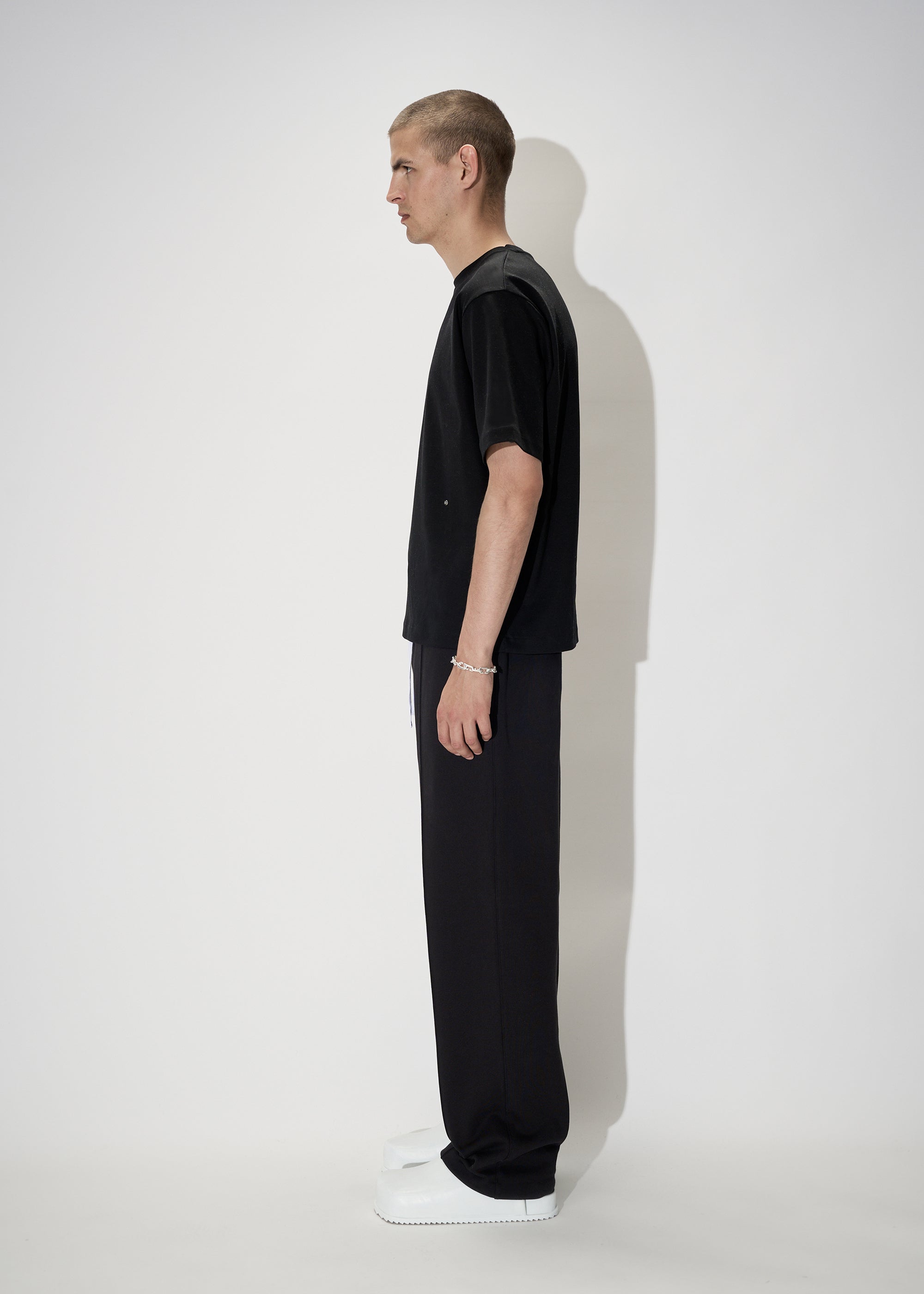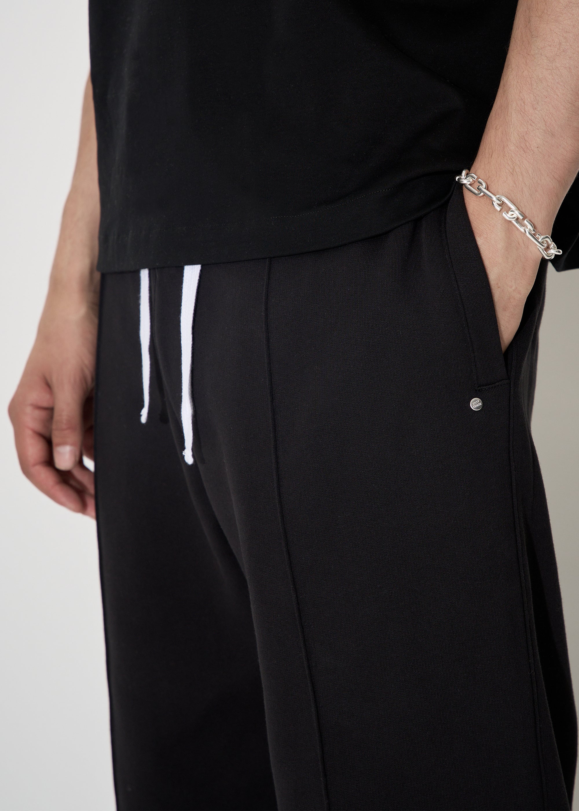 The Wide Leg Sweatpants are crafted from heavy brushed-back cotton ensuring a sharp look and the outside and comfort and warmth of wear on the inside. The garment is finished with a branded metal rivet on the left pocket, a pin-tuck pleat at the front, and the brand's logo embroidered above the back pocket.