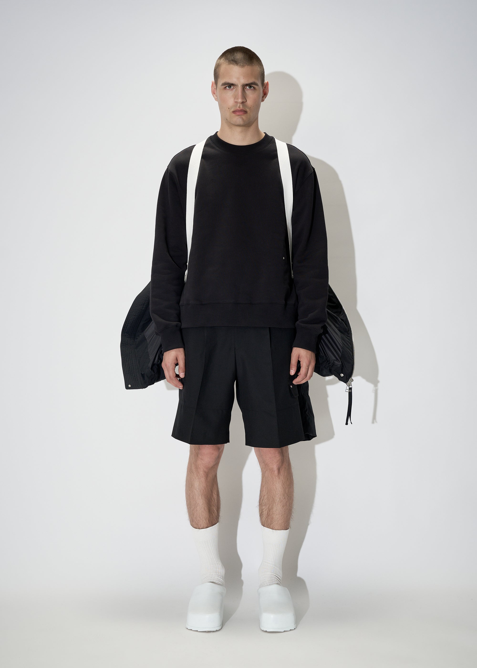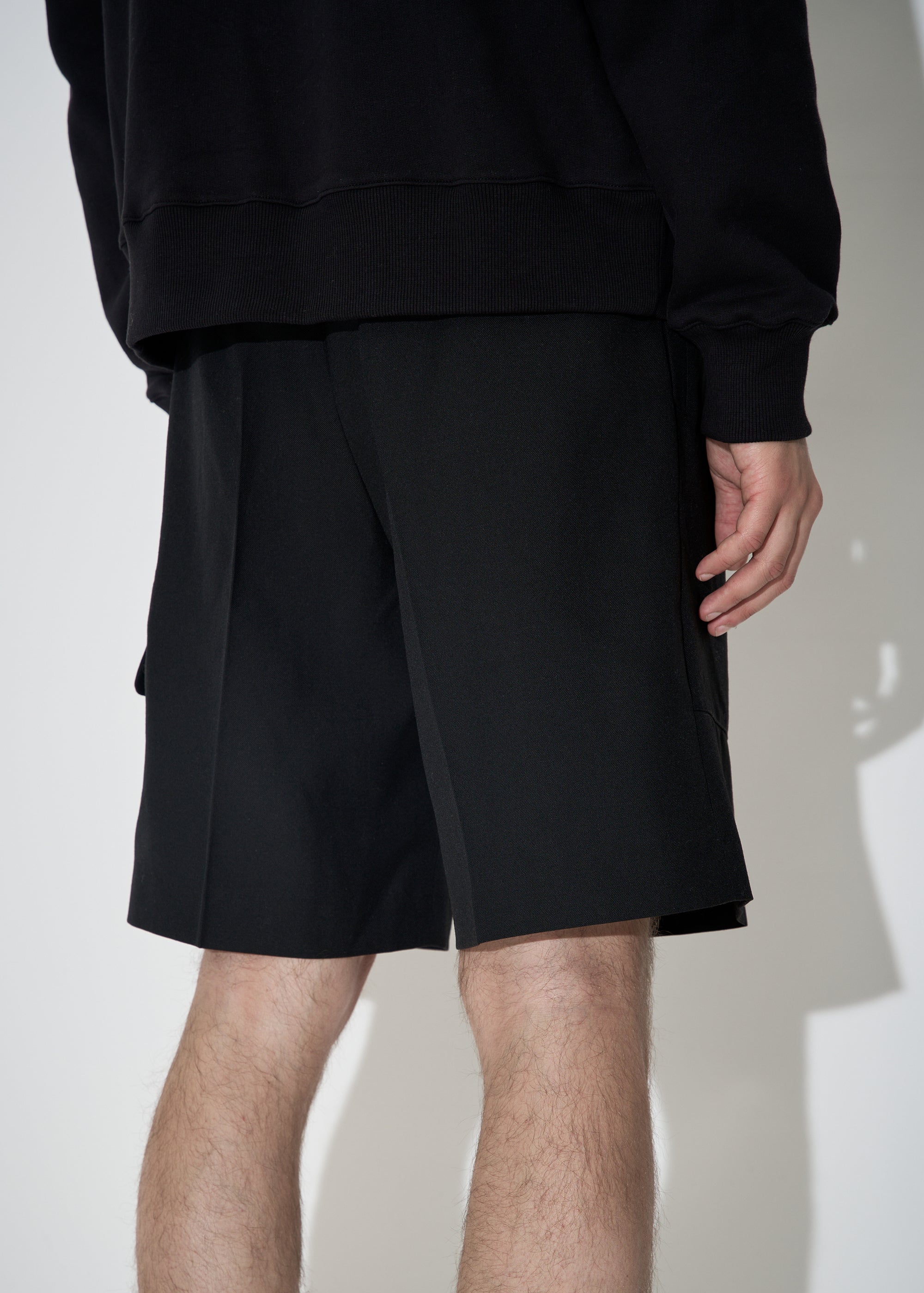 The Wide Leg Wool Shorts are crafted from a Portuguese wool blend fabric to ensure a crisp look and maximum comfort during wear. The inside is finished with a constructed waistline and piping details. Branded rivet on the left flap pocket.