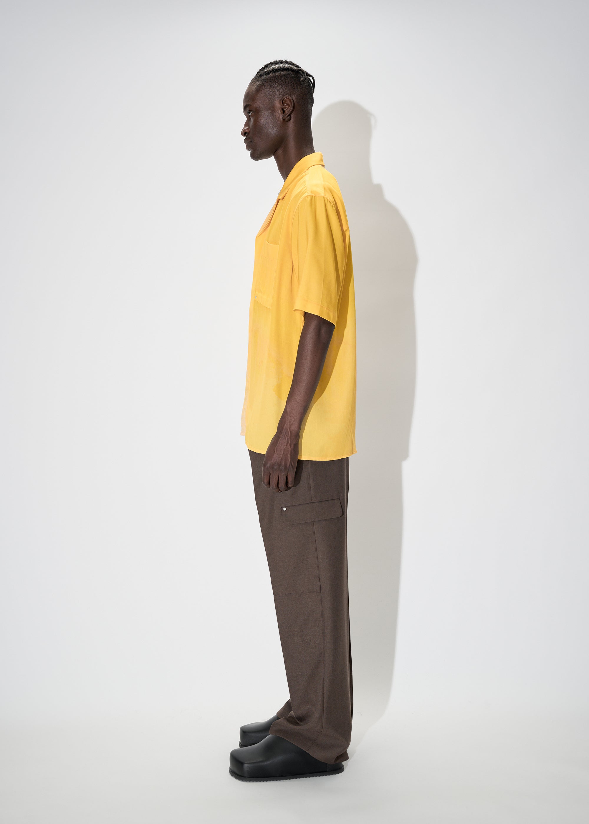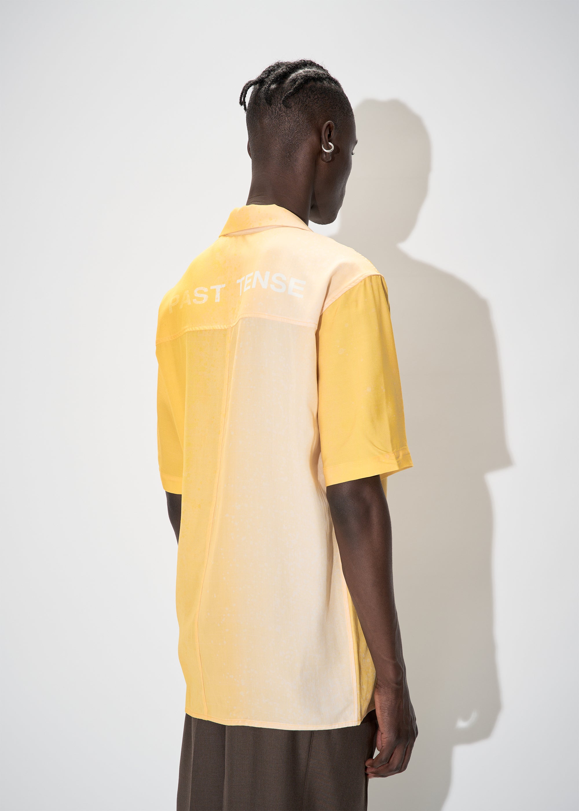 The Blurry Print Open Collar Short Sleeves Shirt is crafted from a soft Tencel fabric ensuring a light wear and silky touch. The relaxed fit is complemented with a boxy shape. The garment is finished with a branded metal rivet on the chest pocket, concealed front buttoning and the printed brand's logo stretching across the upper back.