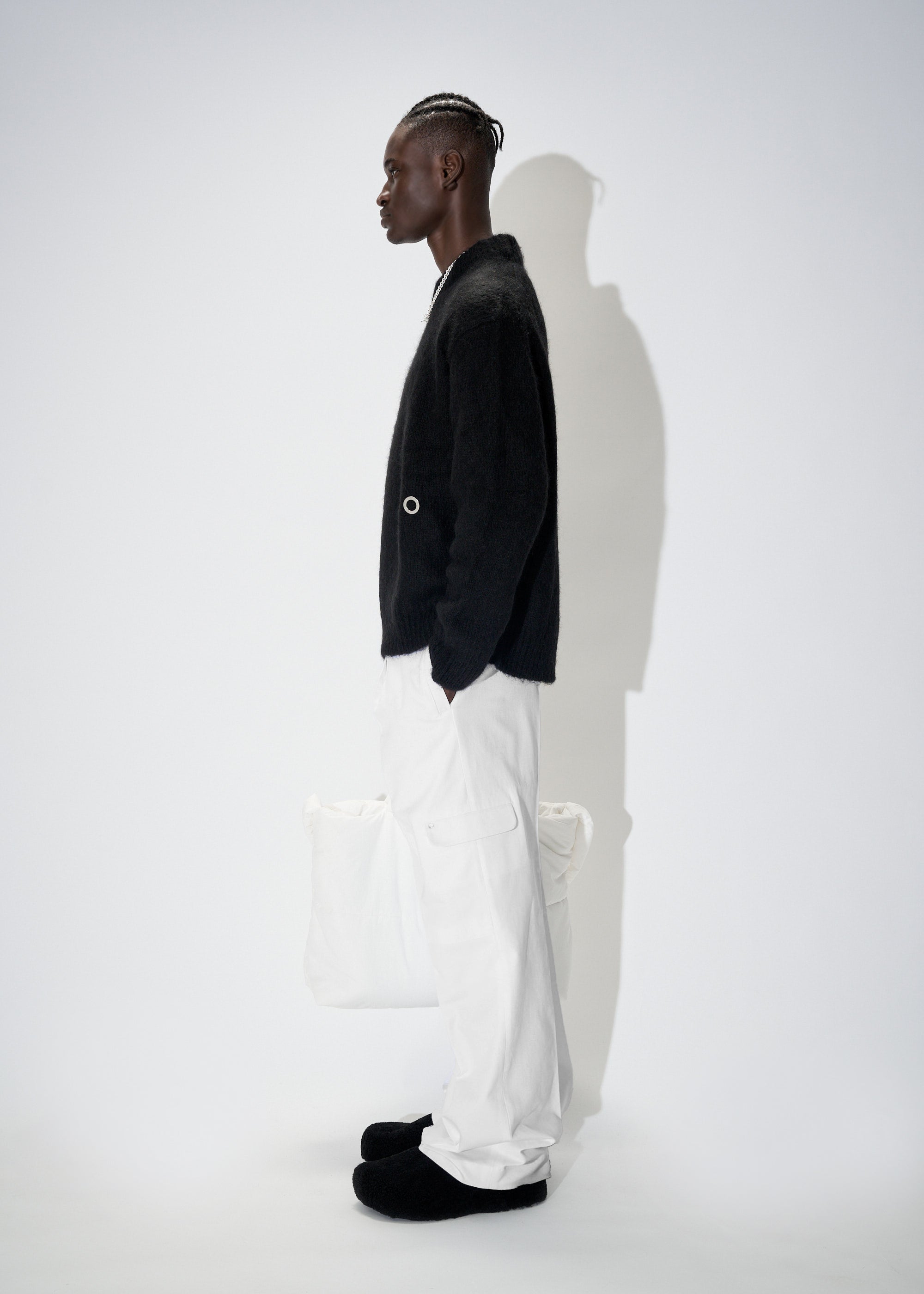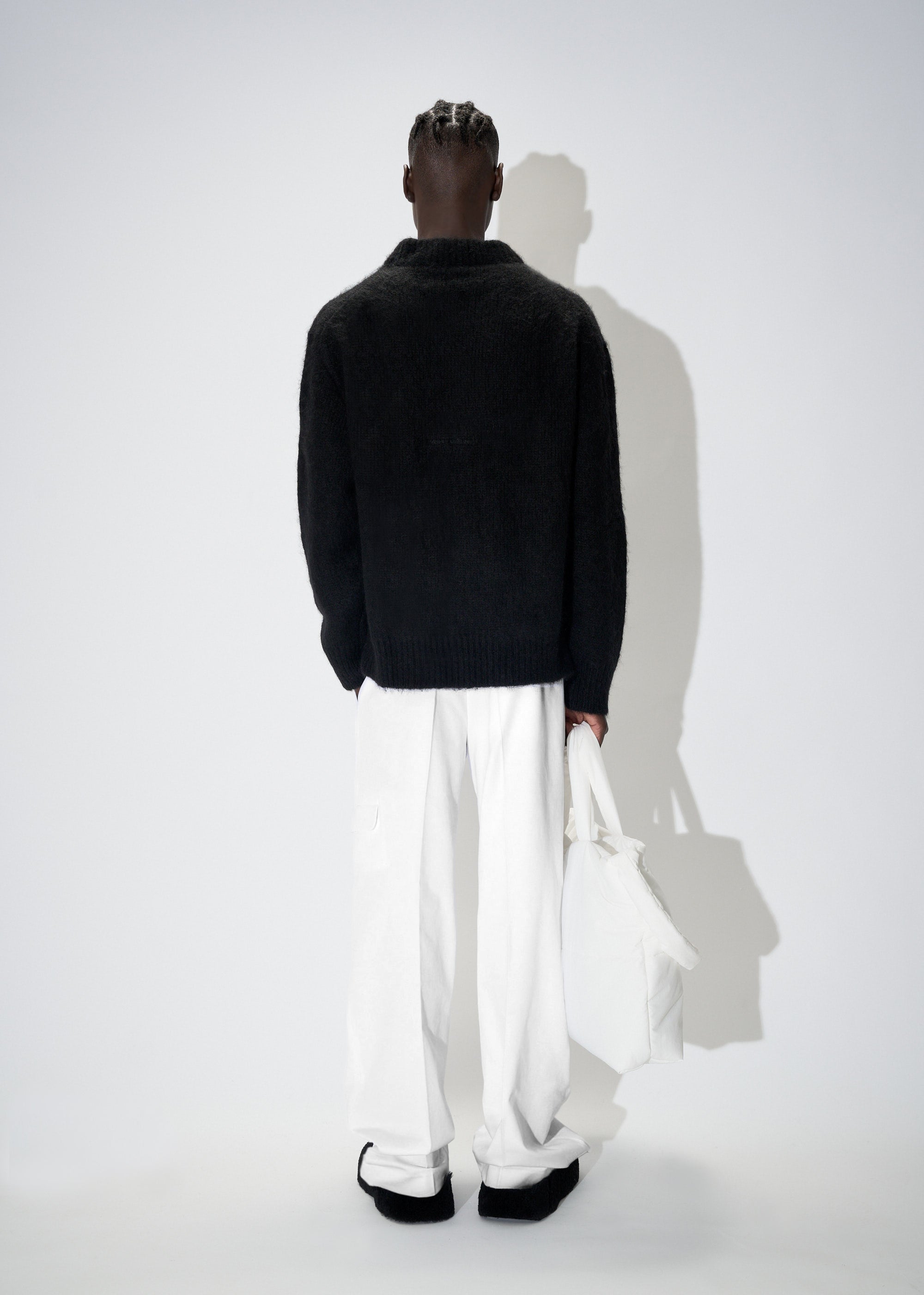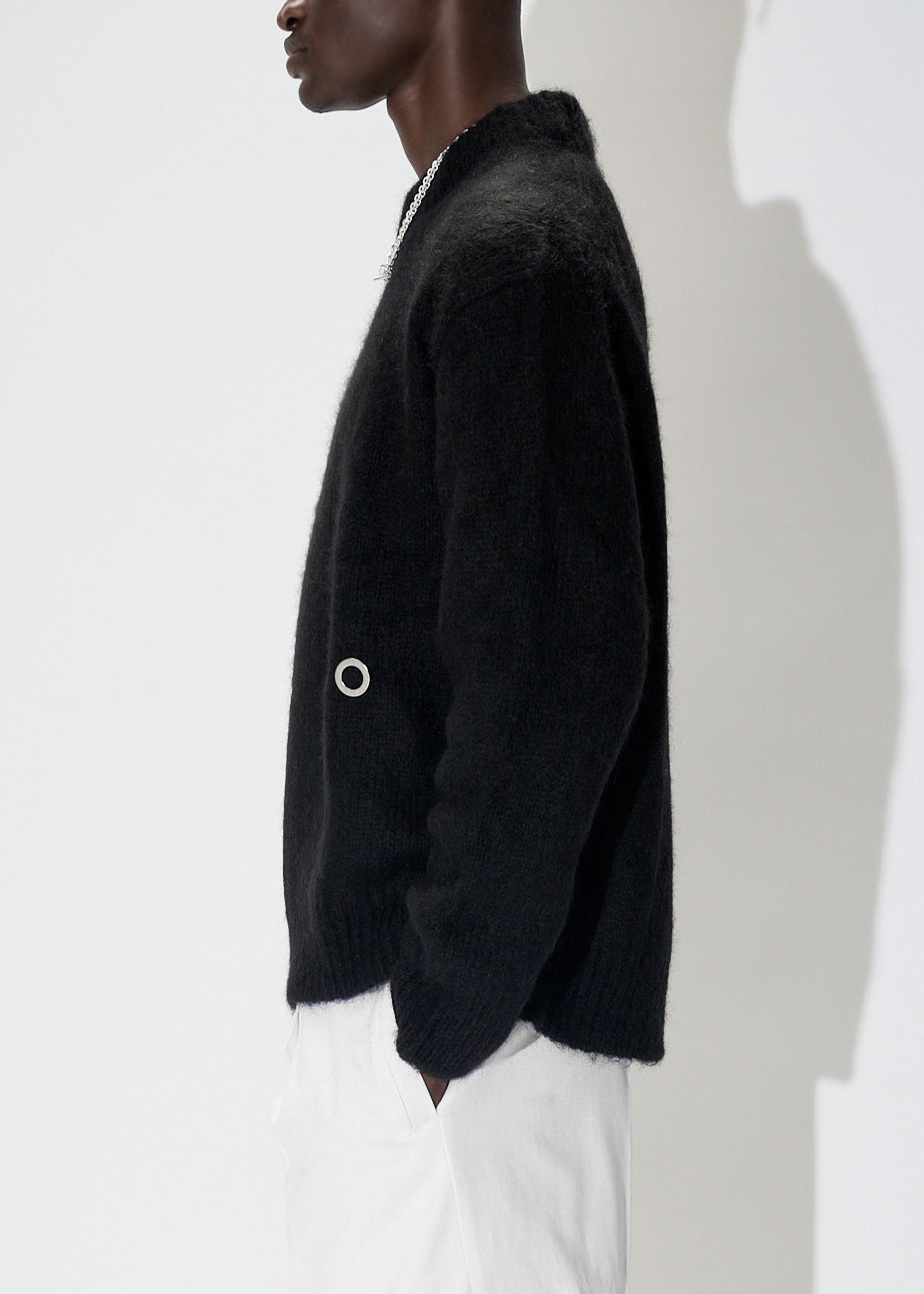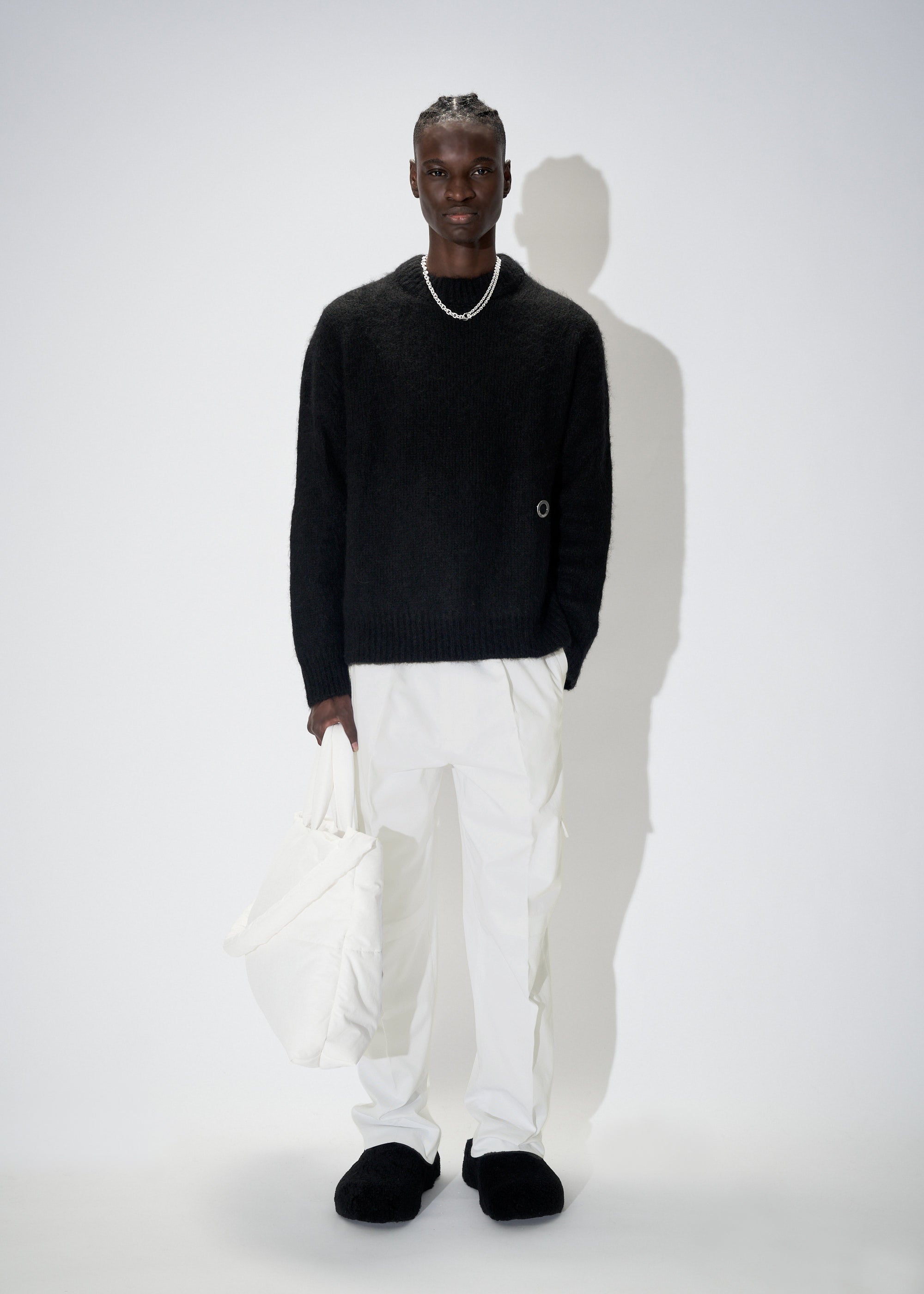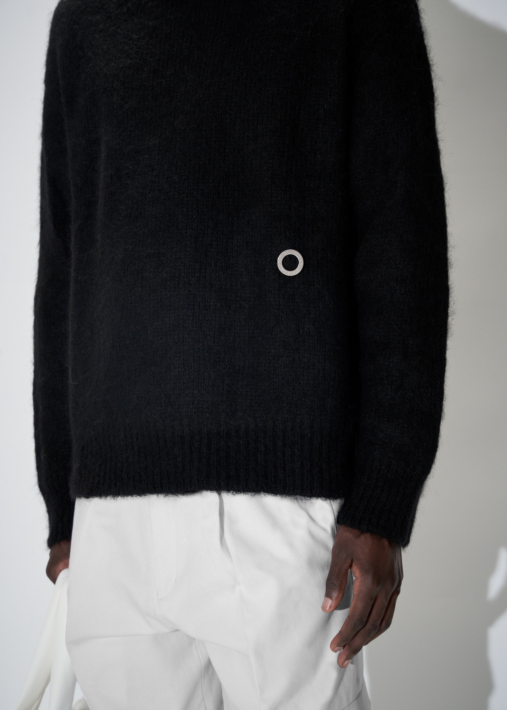 The Brushed Alpaca Crewneck Knit is made in the traditional way with a fully fashioned finish and is knitted with a double layer to give the garment a very smooth feeling. The soft texture of the Alpaca yarn is enhanced with soft brushing to maximise comfort and warmth during the wear. It comes with a detachable branded metal brooch and a tonal embroidery of the brand's logo in the centre back.