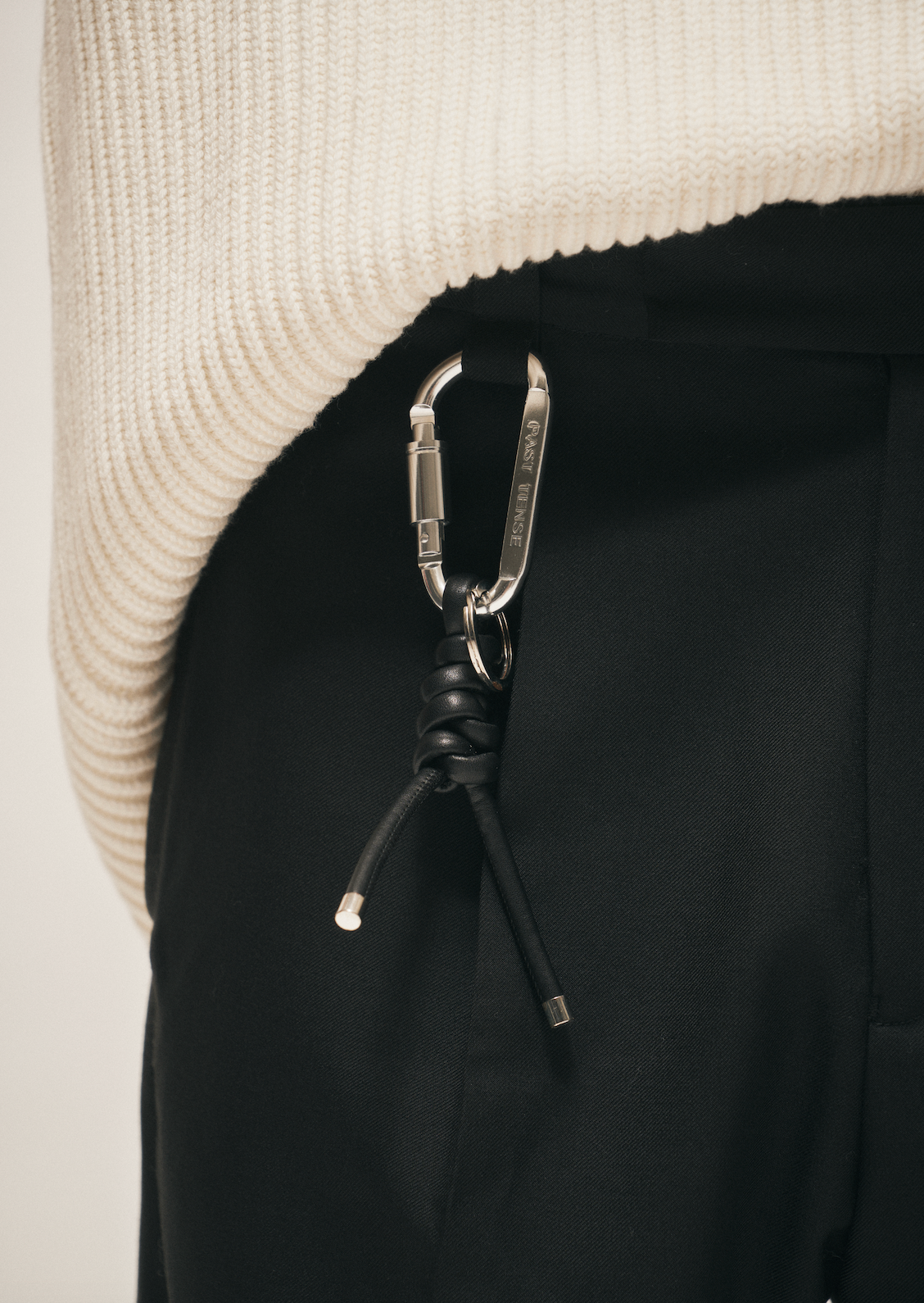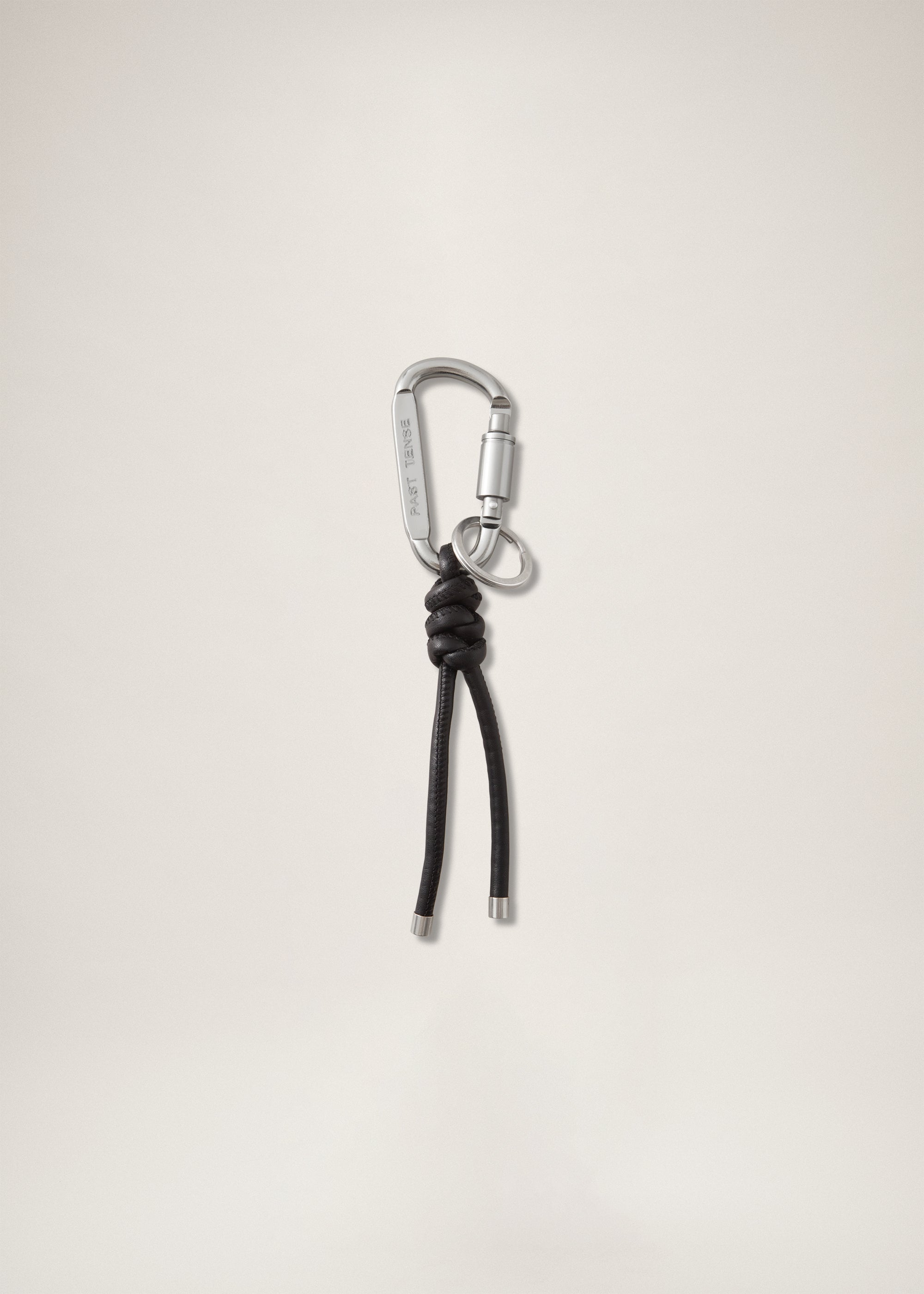 The Carabiner Keychain comes with a branded key ring and a leather rope detail. The screw lock ensures that items are securely secured. Made in aluminium it adds almost zero weight during the wear.