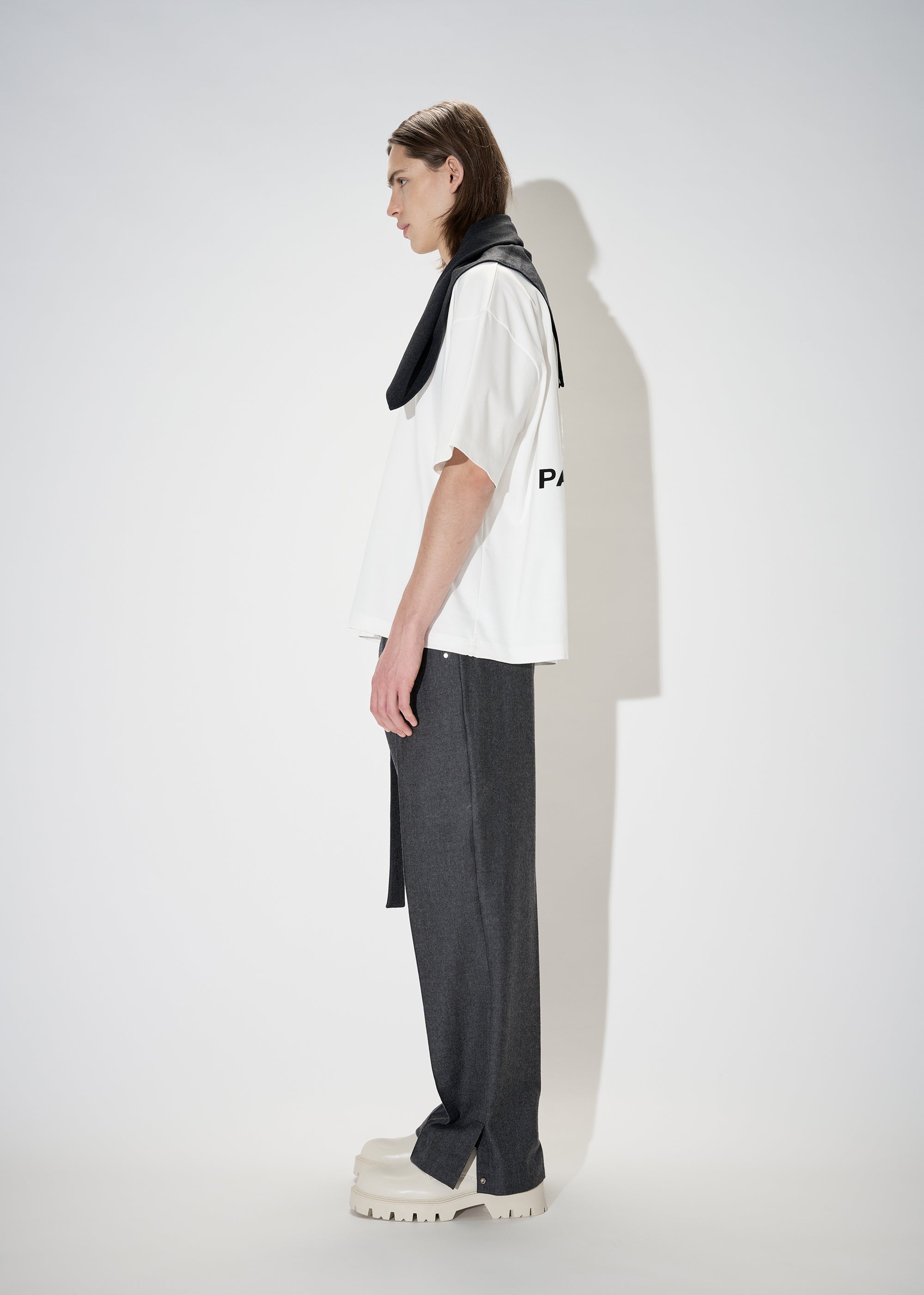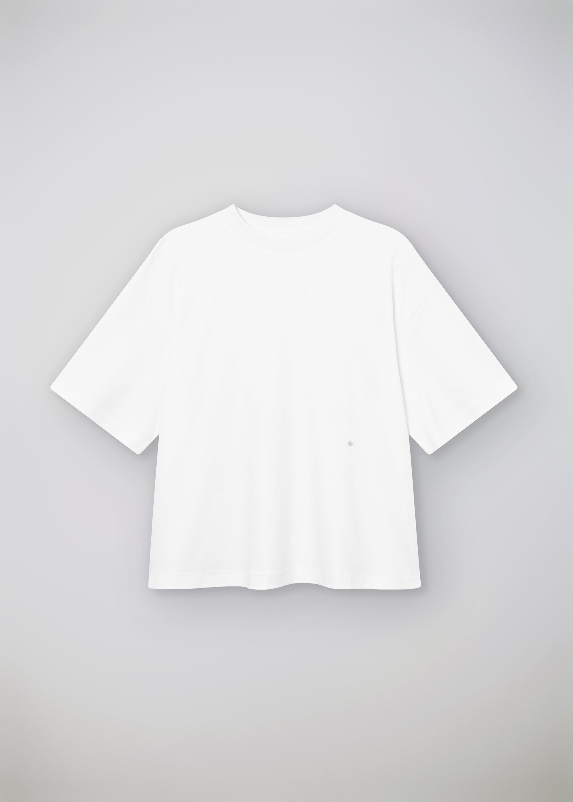 The Short Sleeves Oversized Logo Mock Neck T-Shirt is crafted from a premium interlock cotton ensuring a sharp look and soft touch. The relaxed fit is complemented with a boxy shape and a mock neck collar. The garment is finished with the branded rivet on the side front and the large logo screen printed across the centre back.