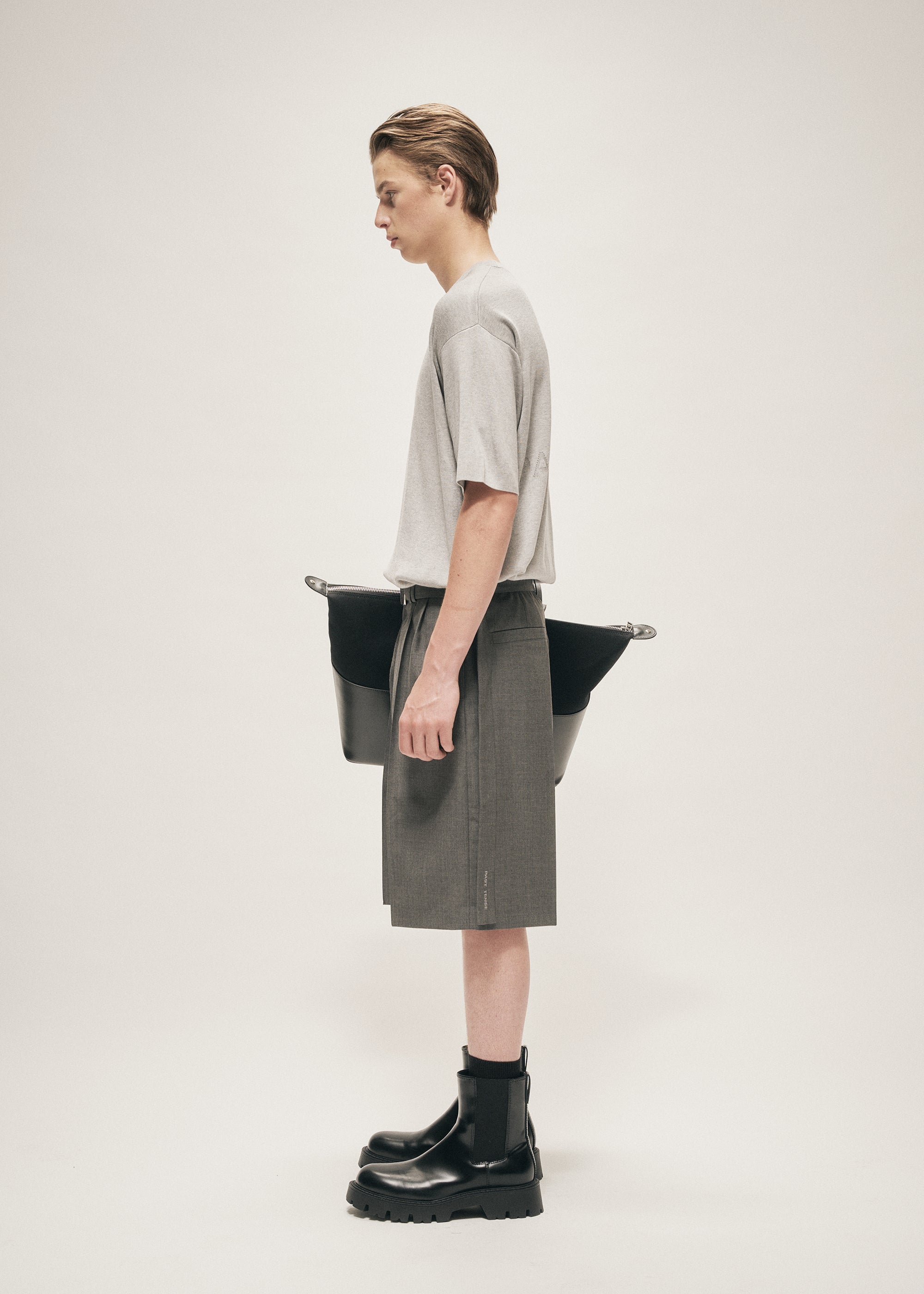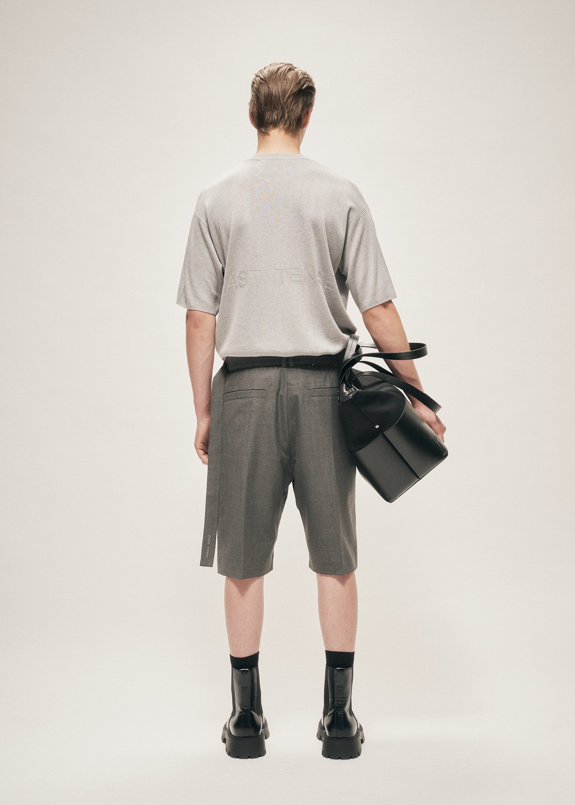 The Tropical Wool Belted Wide Leg Trousers are crafted from a Portuguese wool blend fabric to ensure a crisp look and maximum comfort during wear. Double pleated waist with a branded metal snap button closure. The inside is finished with a constructed waistline, half-lined and piping details. A removable self fabric belt completes the look. Embroidered logos on the belt and at the back of the waistband on a self fabric patch.
