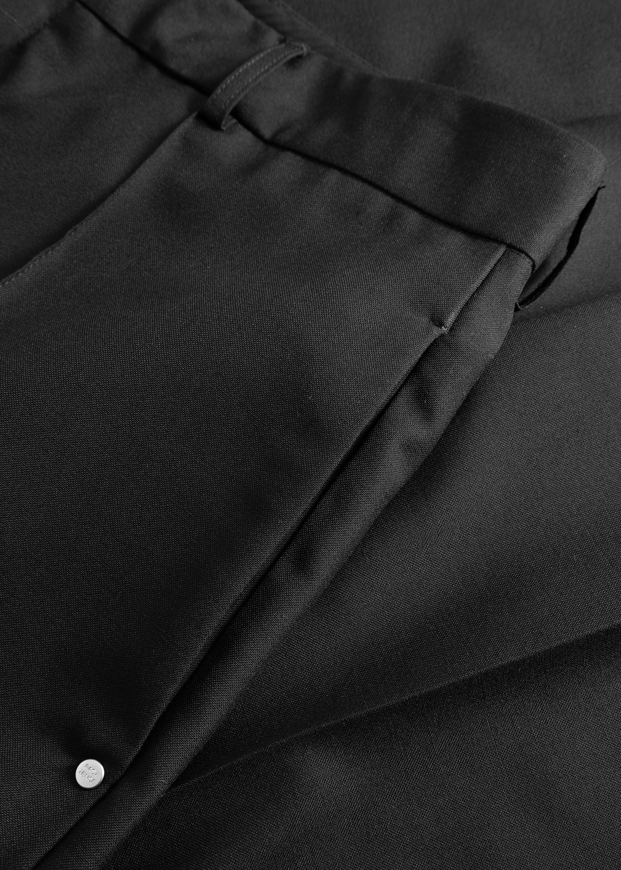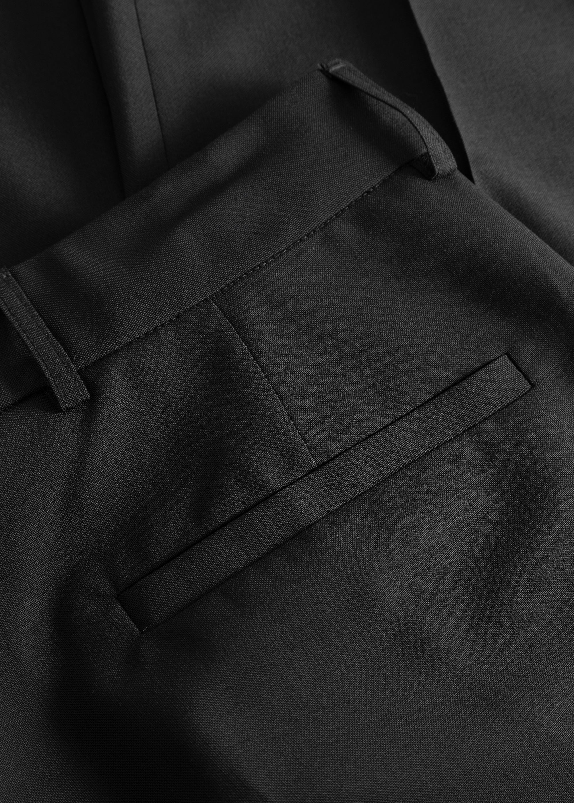The Tropical Wool Regular Fit Wool Trousers are crafted from a Portuguese lightweight wool blend fabric to ensure a crisp look and maximum comfort during wear. The inside is finished with a constructed waistline, piping details and half-lined legs for better longevity and comfort. Branded rivet on the left pocket.