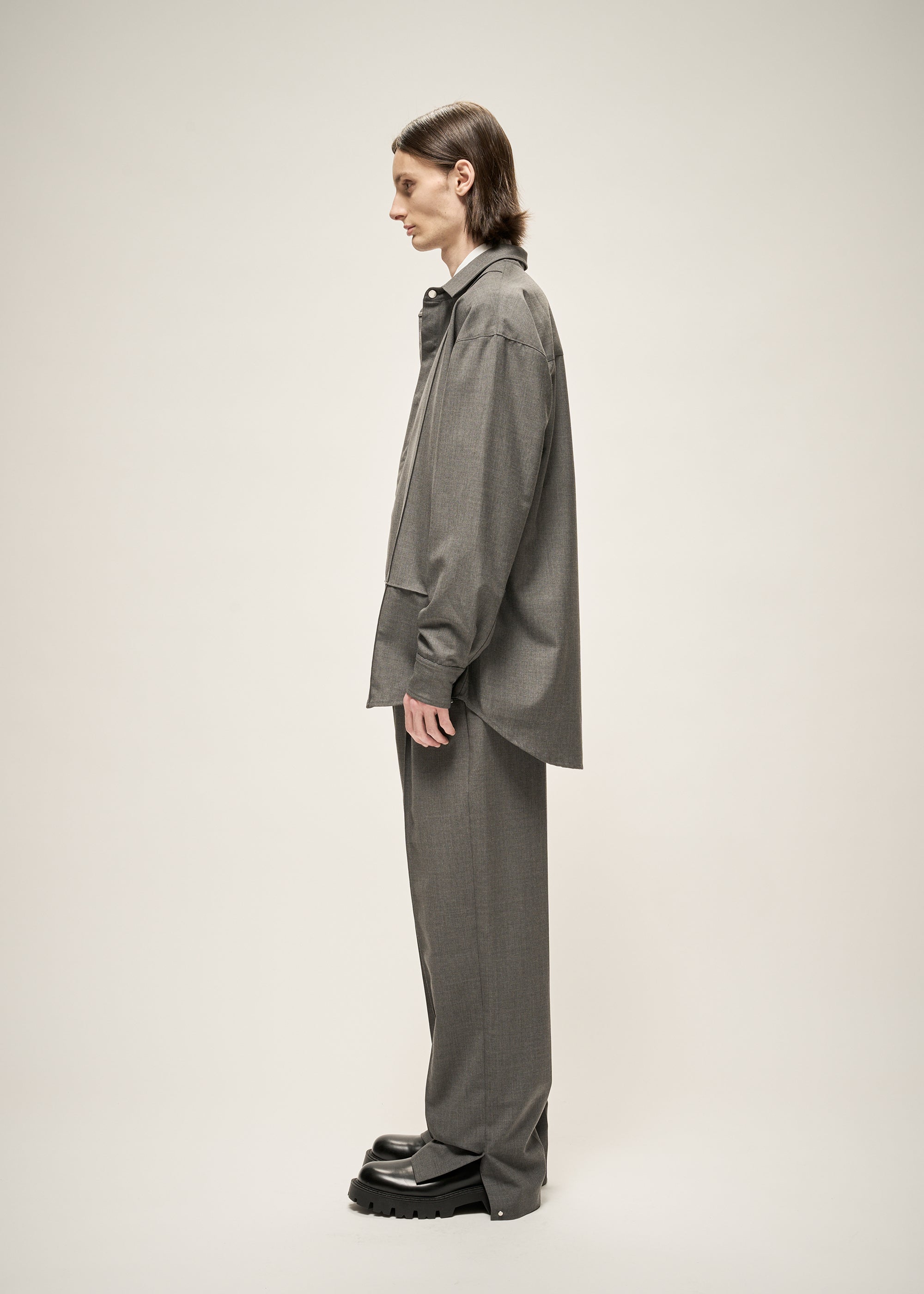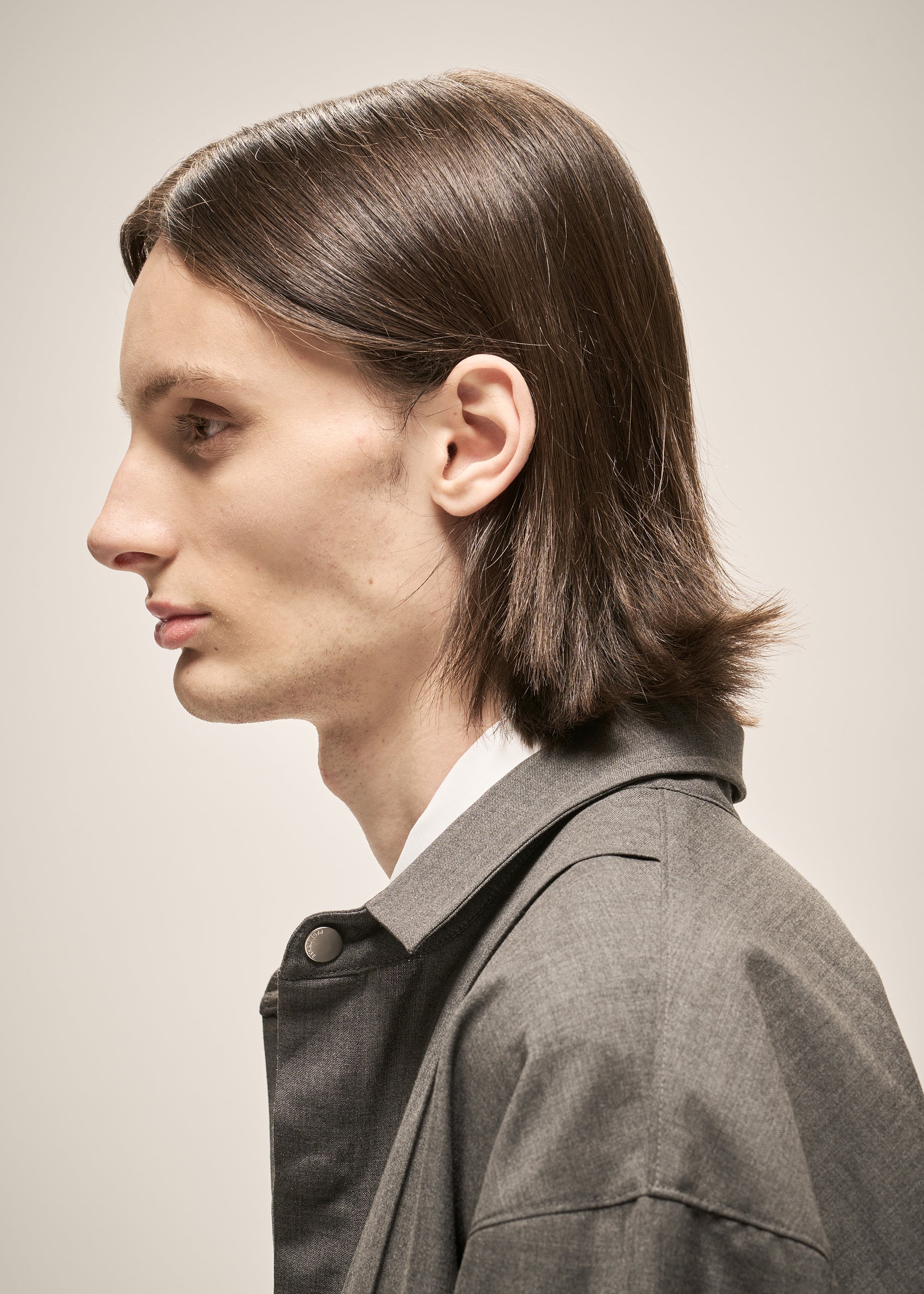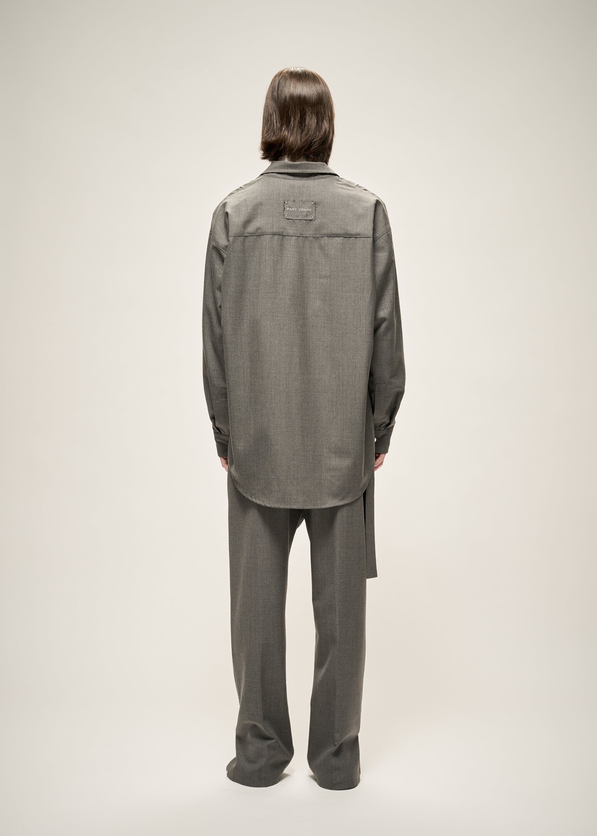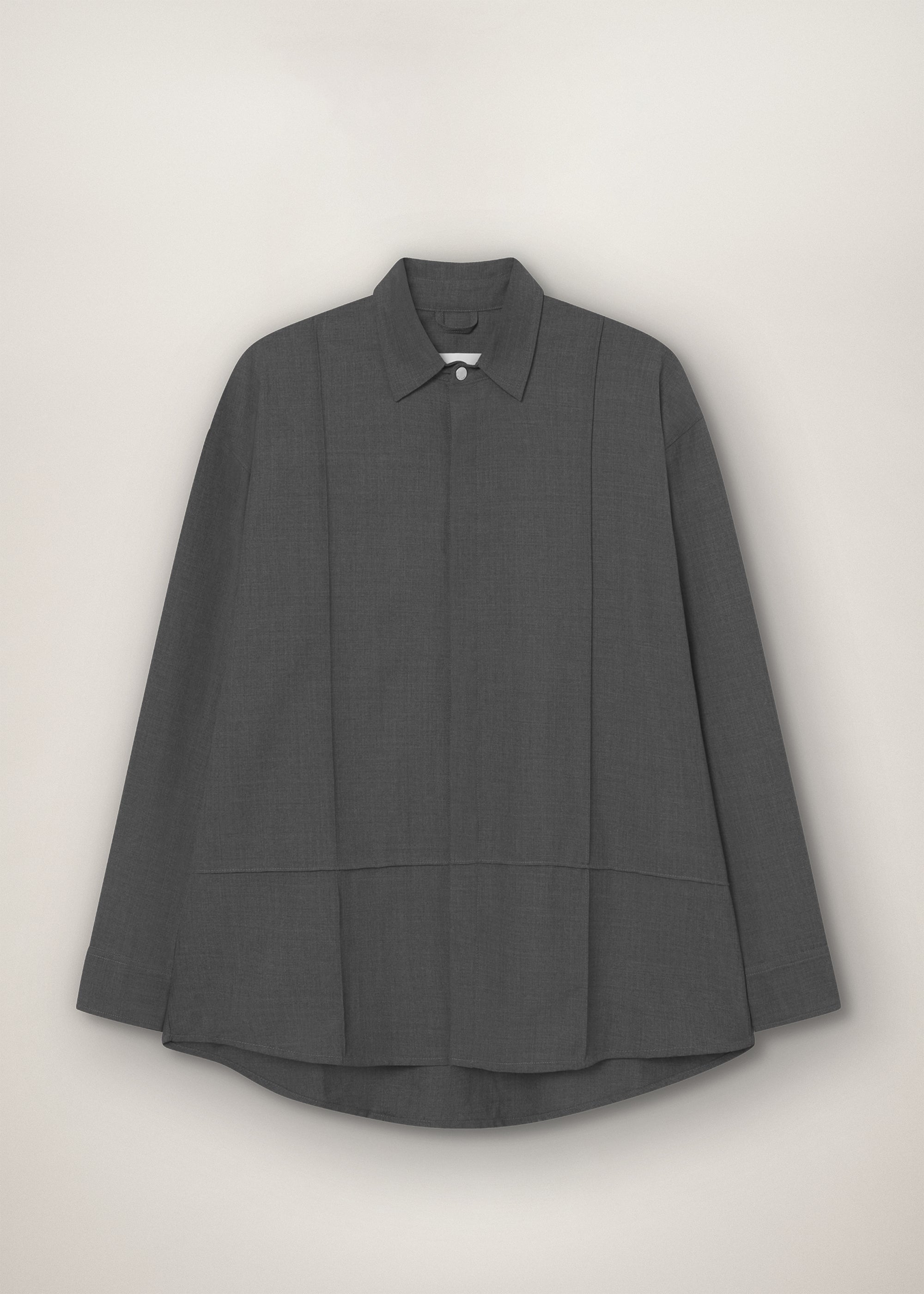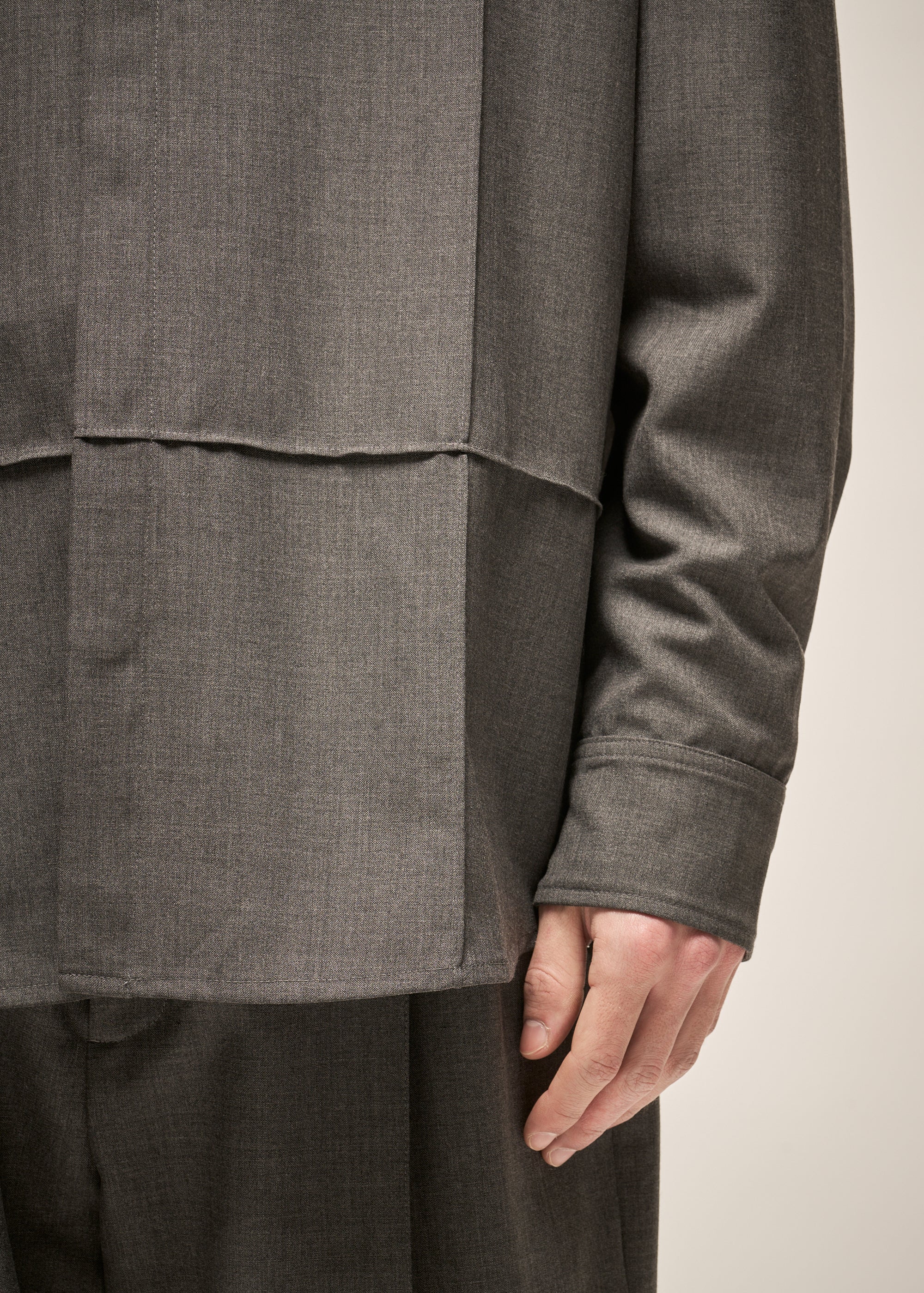 The Tropical Wool Snap Closure L/S shirt is crafted from a Portuguese wool blend fabric to ensure a crisp look and maximum comfort during wear. The garment is finished with pin-tuck pleats details on the front giving the shirt a "fold creases" effect. Concealed snap button closure at front and a logo embroidery patch fixed by metal rivets in the upper centre back.