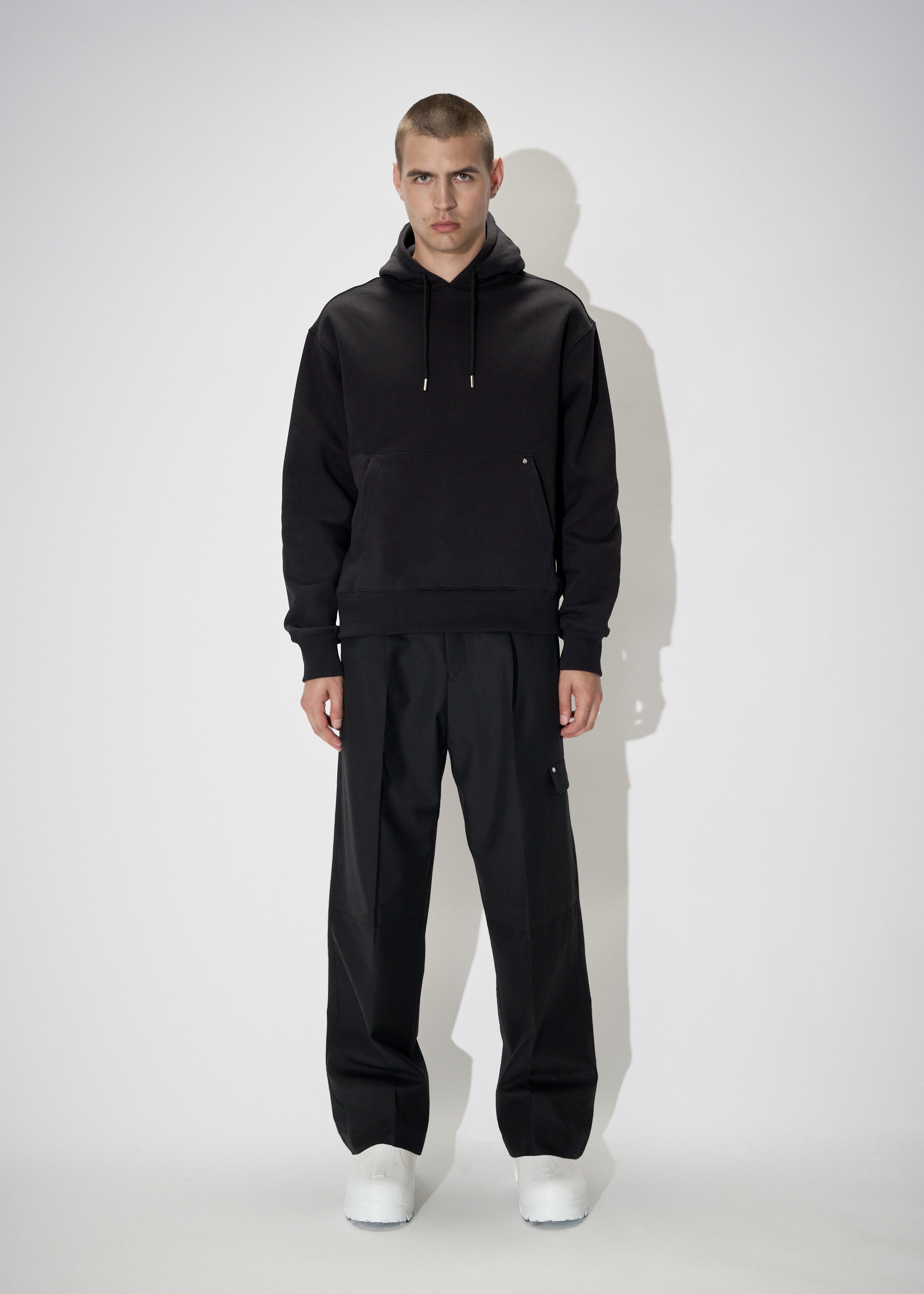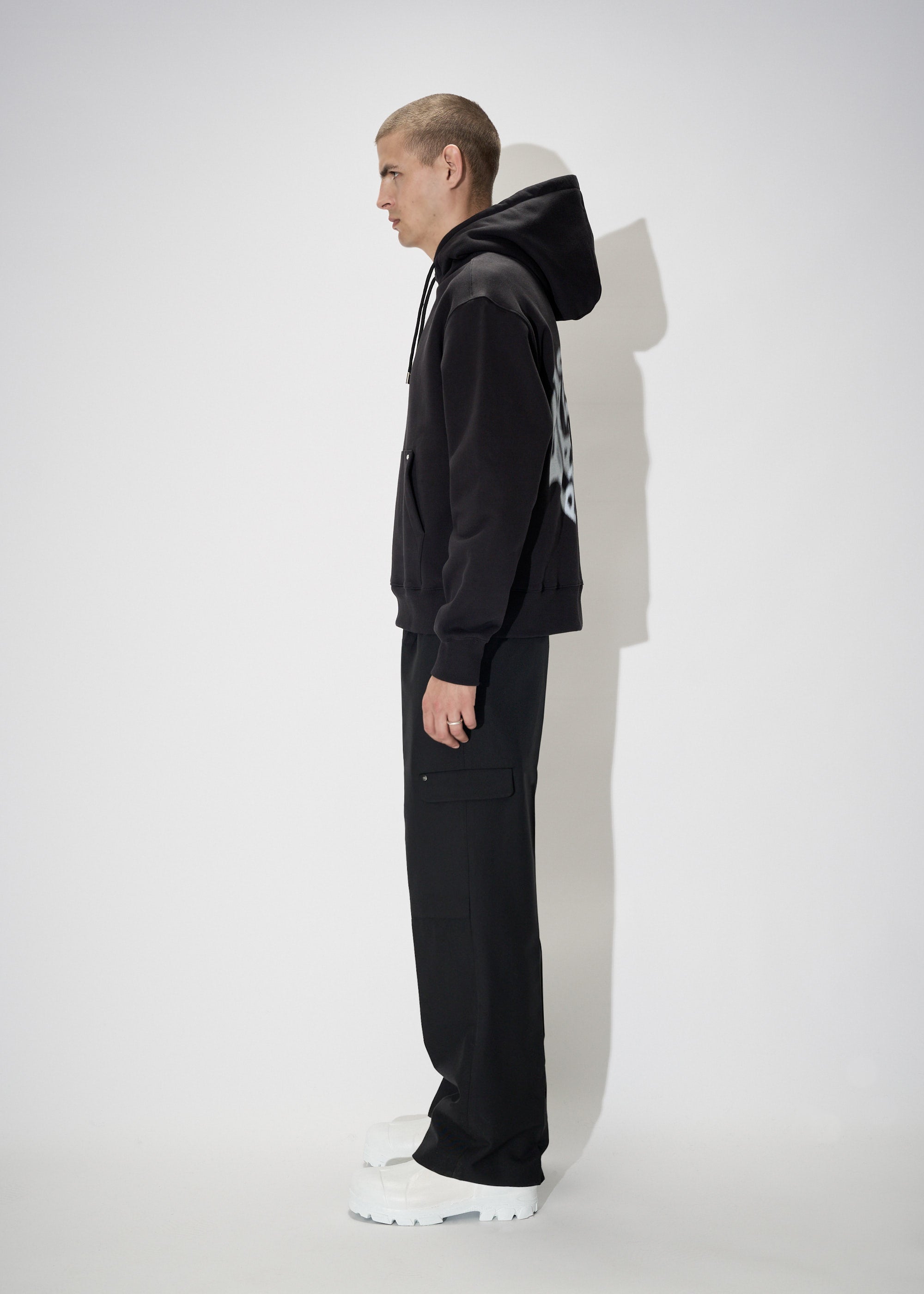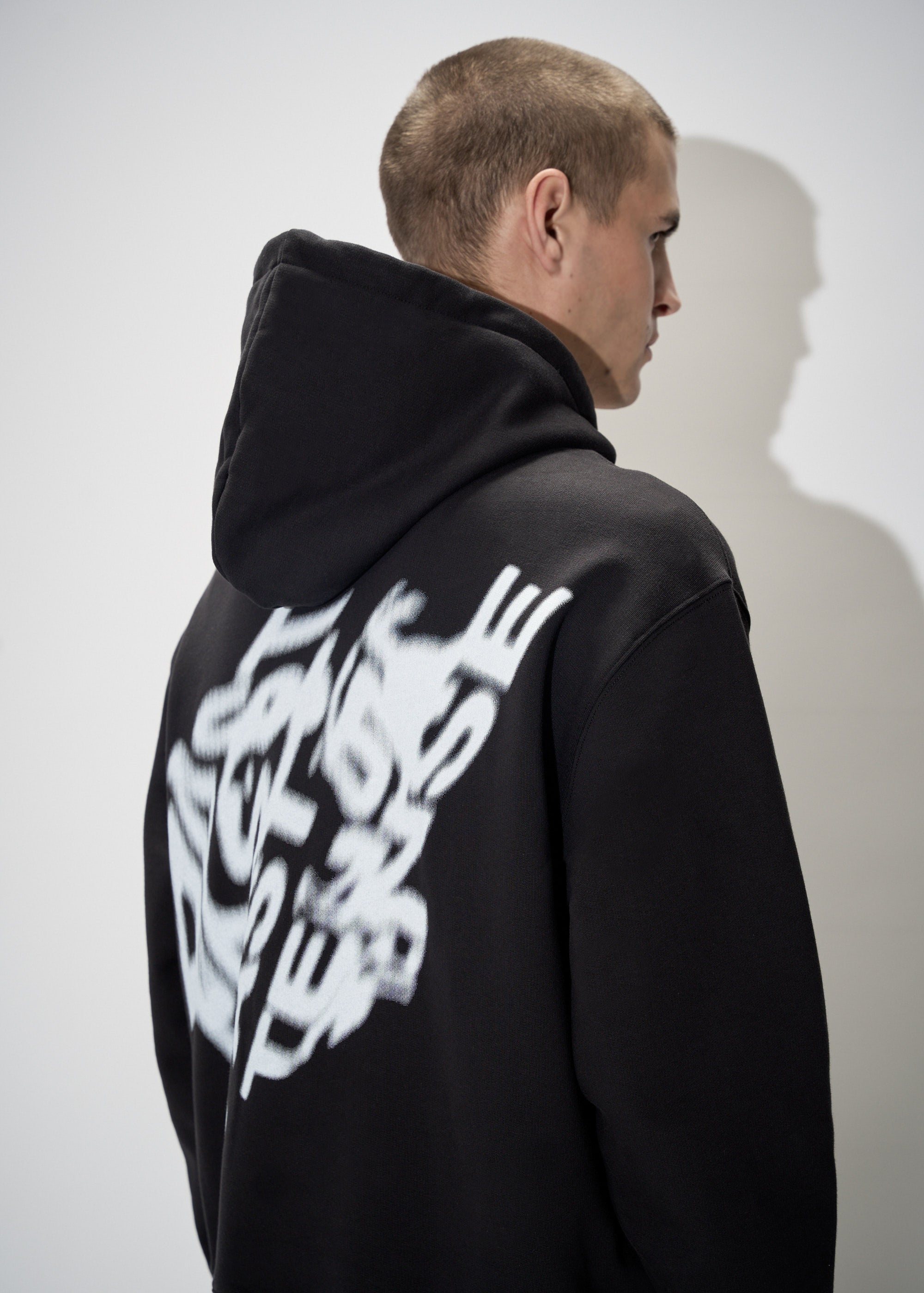 The Warped Logo Hooded Sweatshirt is crafted from heavy brushed-back cotton ensuring a sharp look and the outside and comfort and warmth of wear on the inside. The relaxed fit is complemented with a boxy shape. The garment is finished with a branded metal rivet on the left front side of the kangaroo pocket and the brand's warped logo screen printed over the entire back.