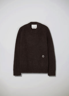 The Brushed Knitted Alpaca Beanie is made of one knitted panel in an oversized shape with a double-layered fold-up. The soft texture of the Alpaca yarn is enhanced with soft brushing to maximise comfort and warmth during the wear. It comes with a detachable branded metal brooch.