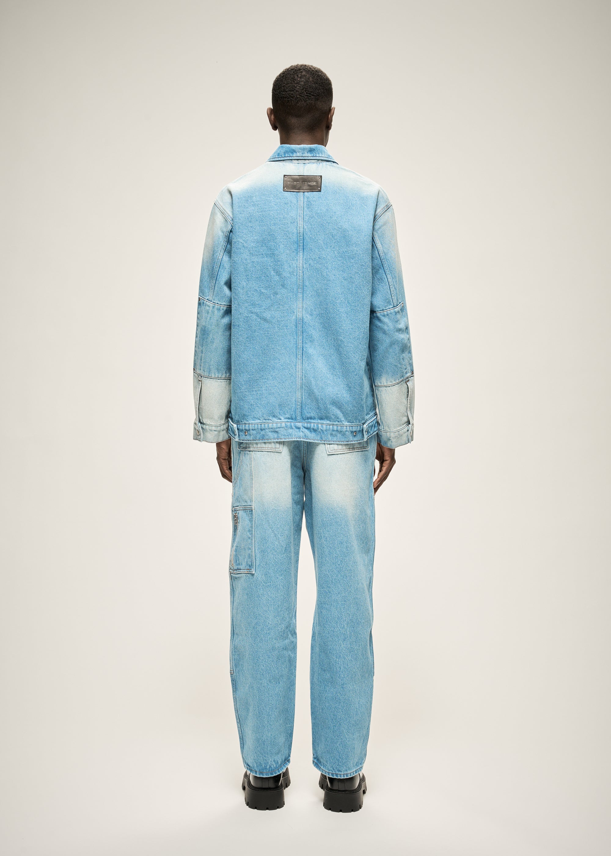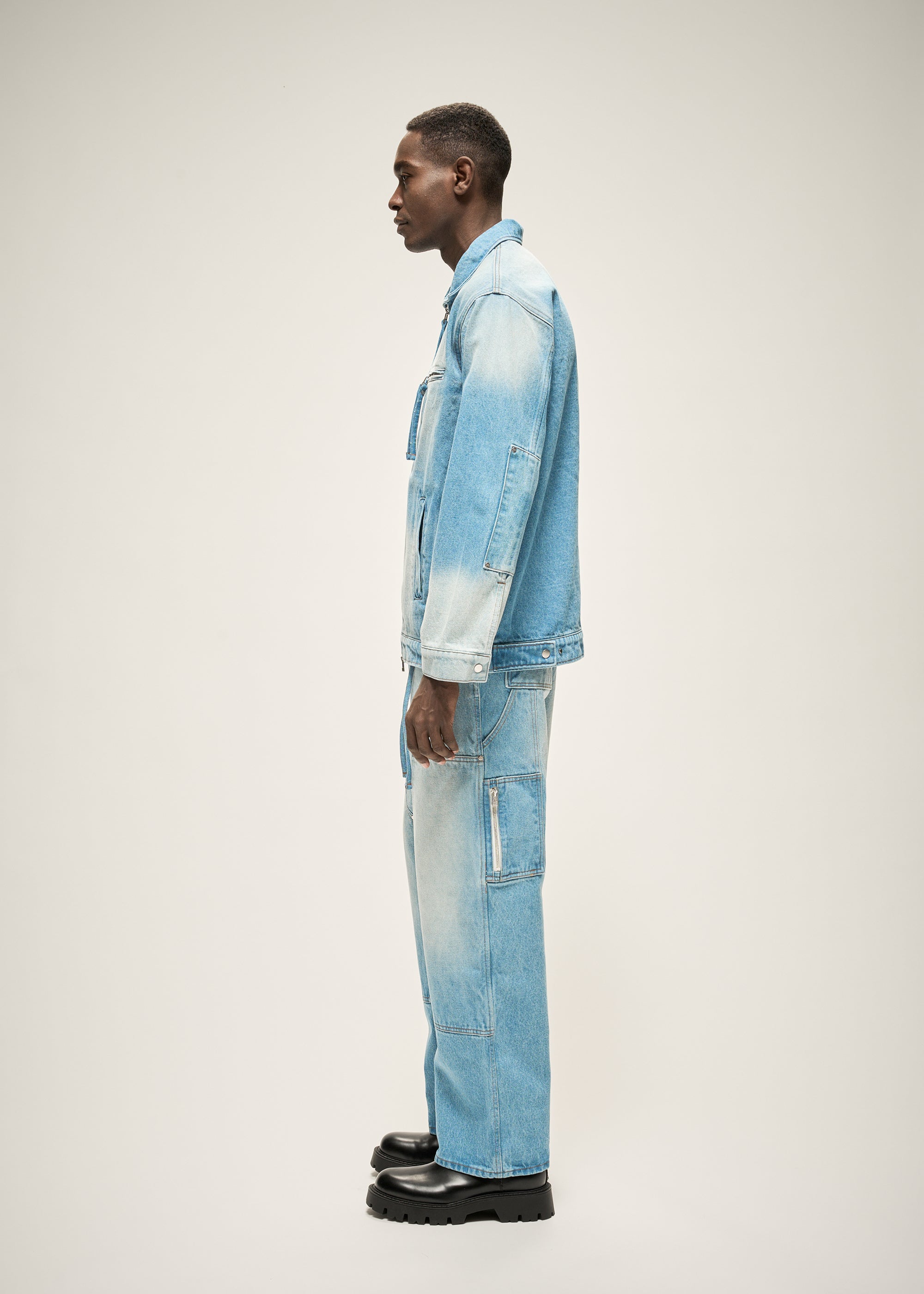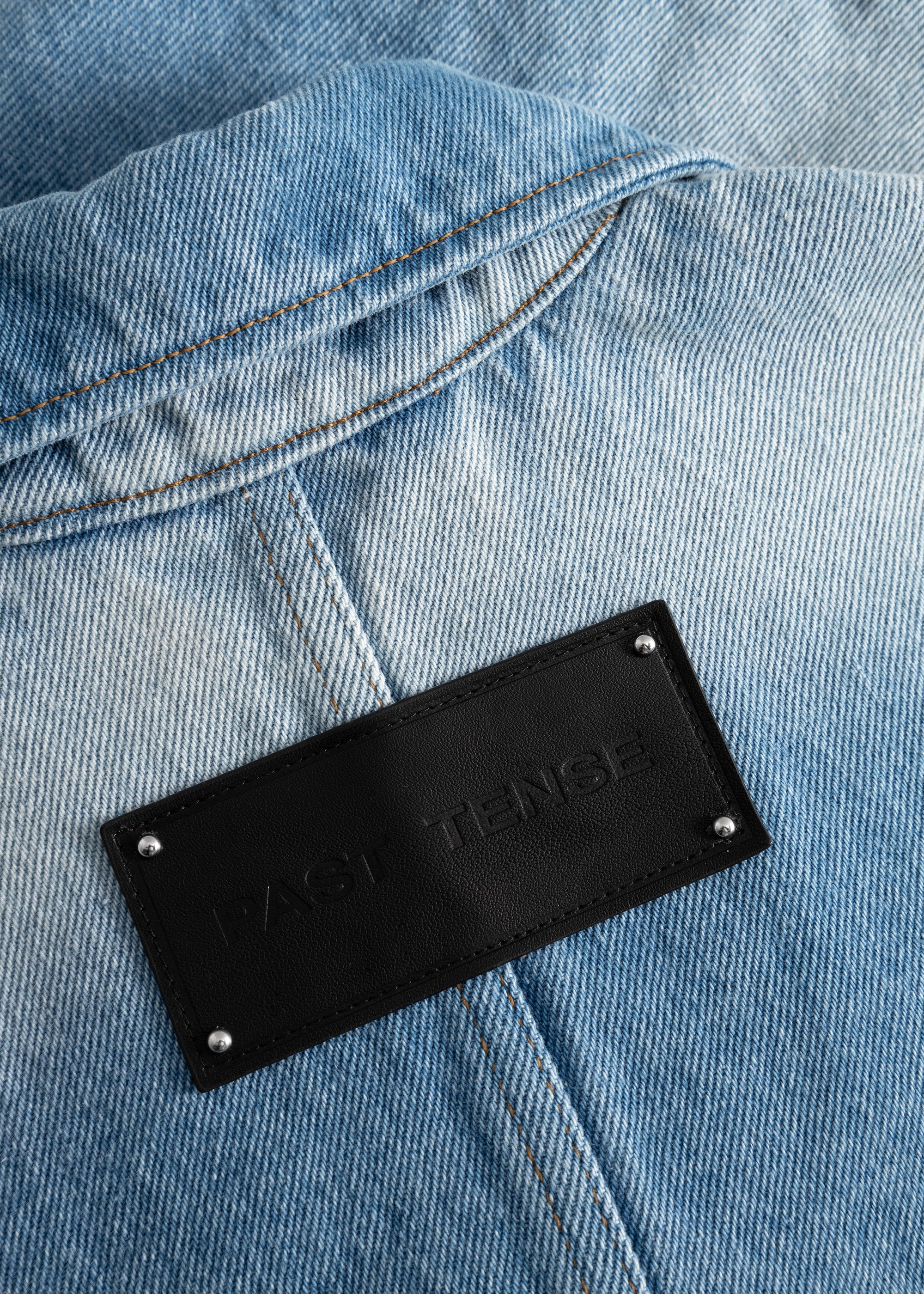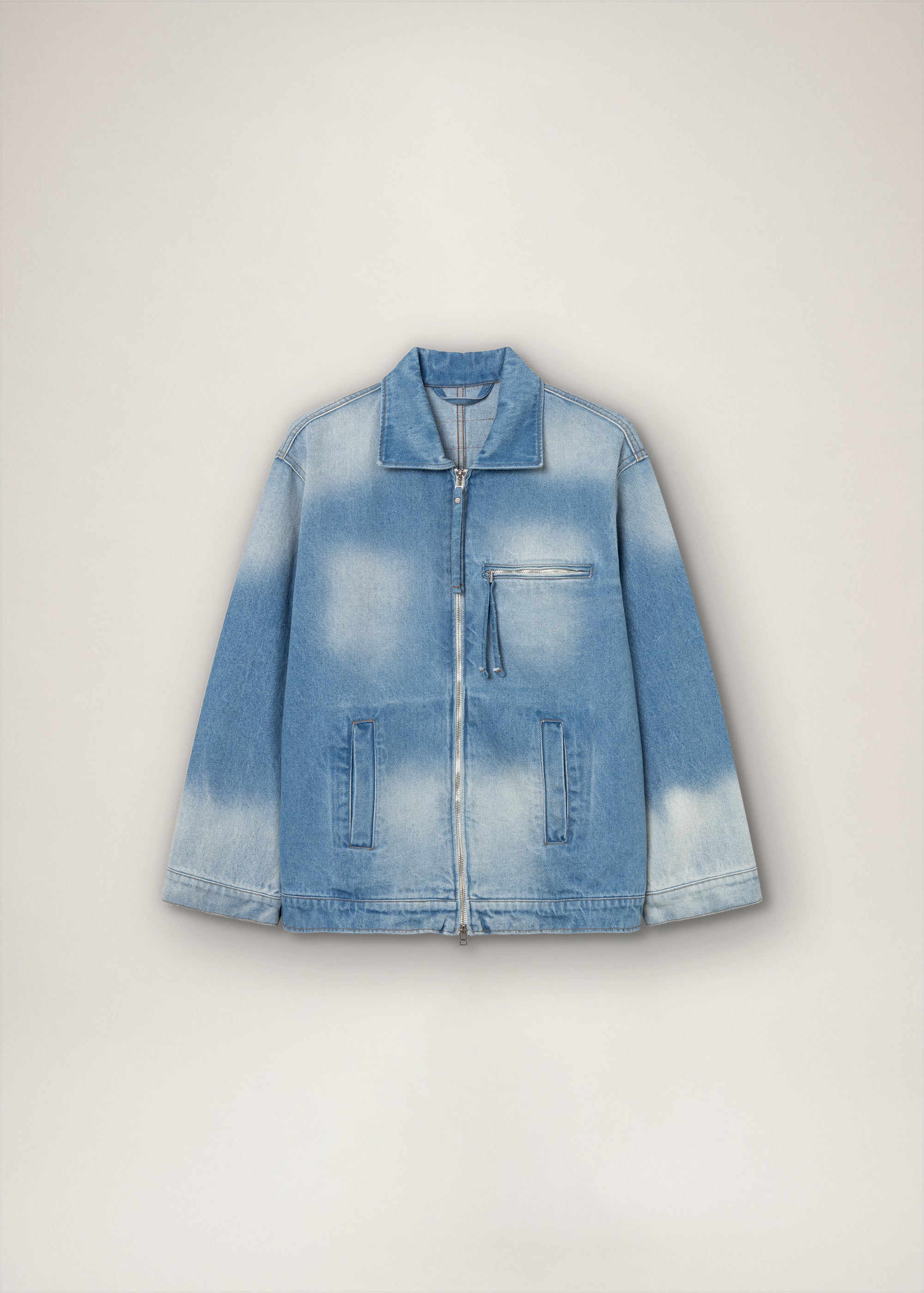 The Denim Zip Work Jacket is crafted from raw Denim and washed with care, ensuring durable wear and a distressed look. The jacket is finished with metal zips, a genuine leather patch at the back and a chest zip pocket.