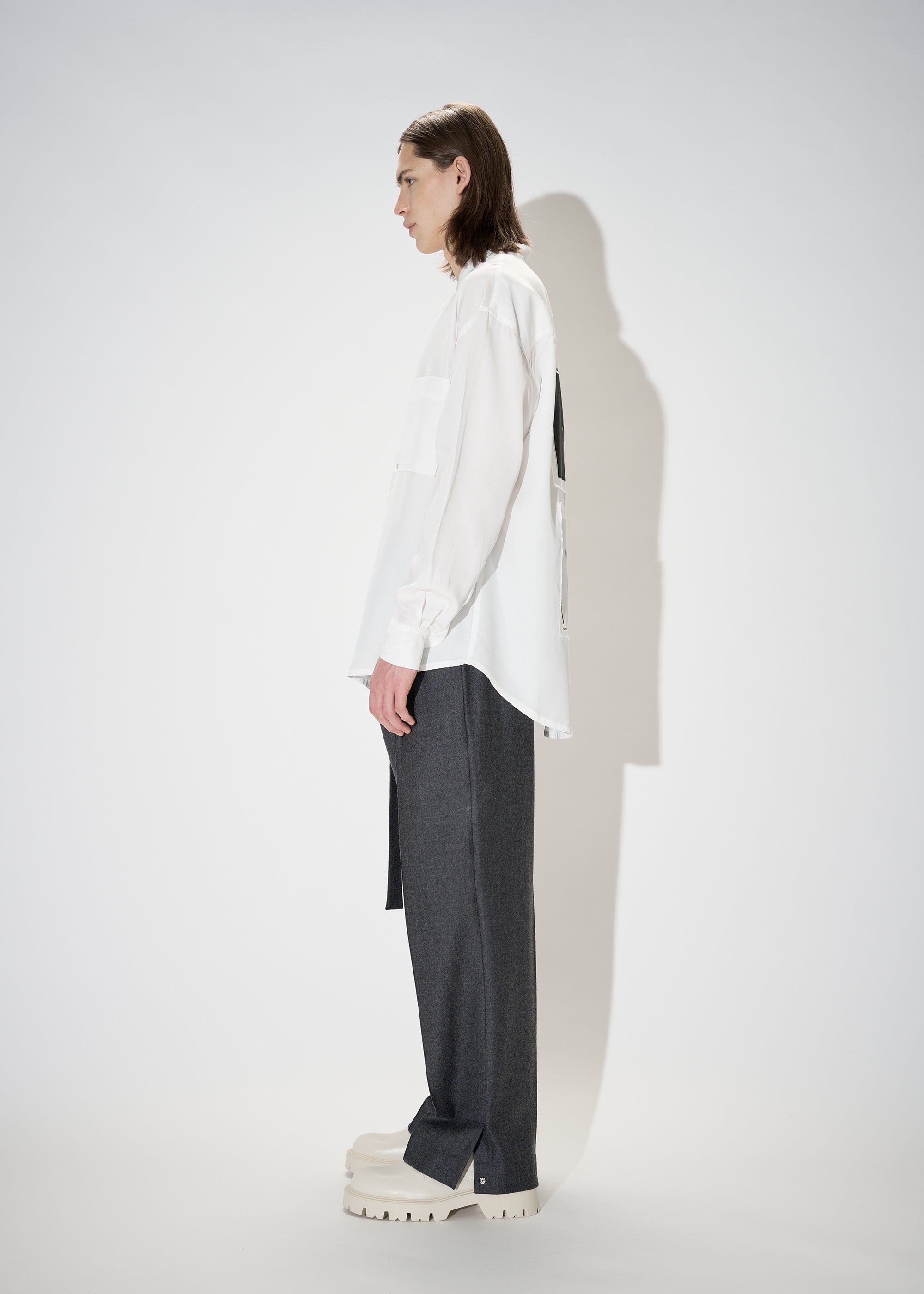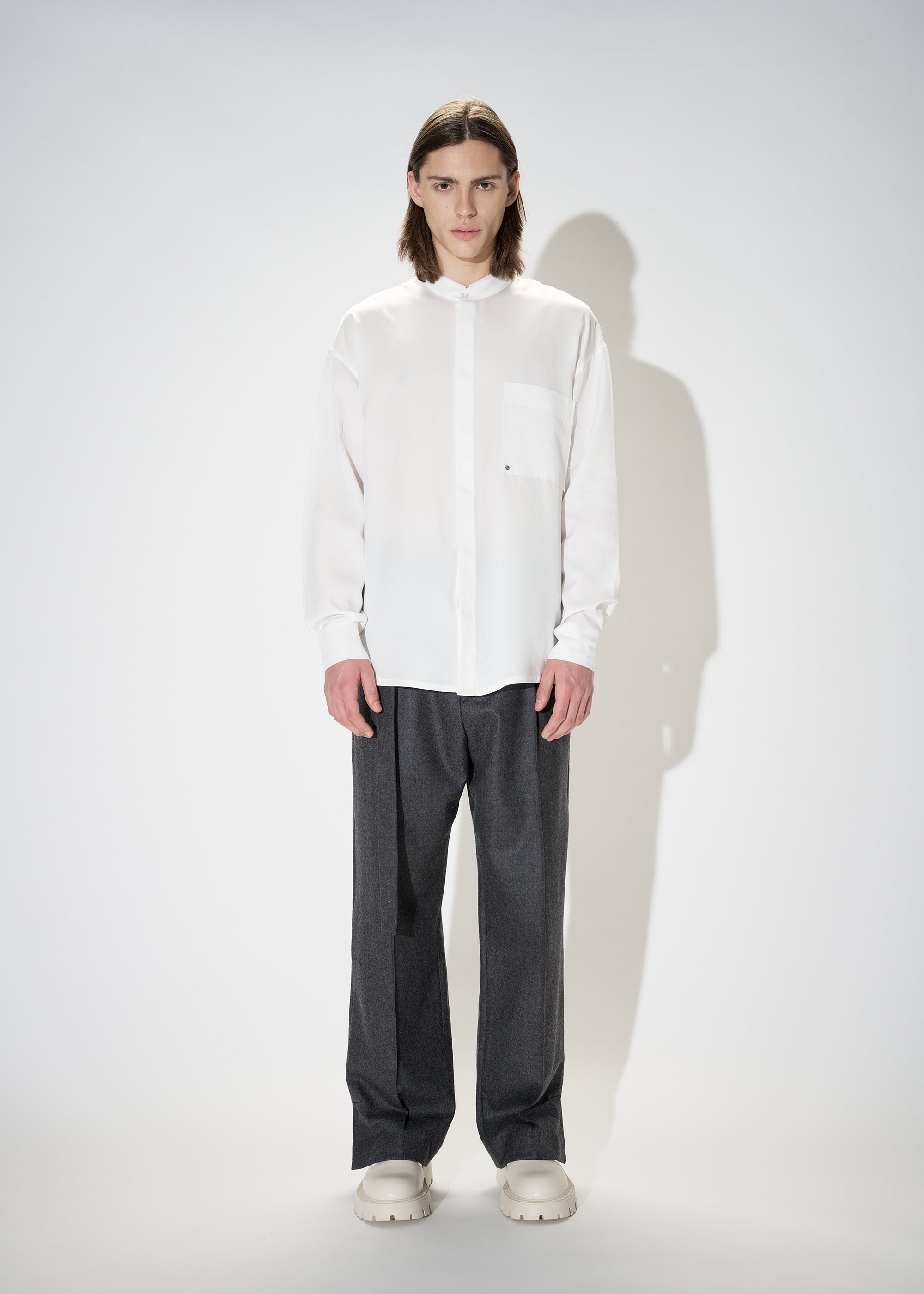 Distressed L/S Stand Collar Shirt
