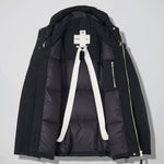 The Hybrid Puffer Jacket is heavily padded with recycled and high fill-power down content. The nylon-cotton main fabric is finished with PFC-free water-repellent treatment to allow for harsh weather wear.