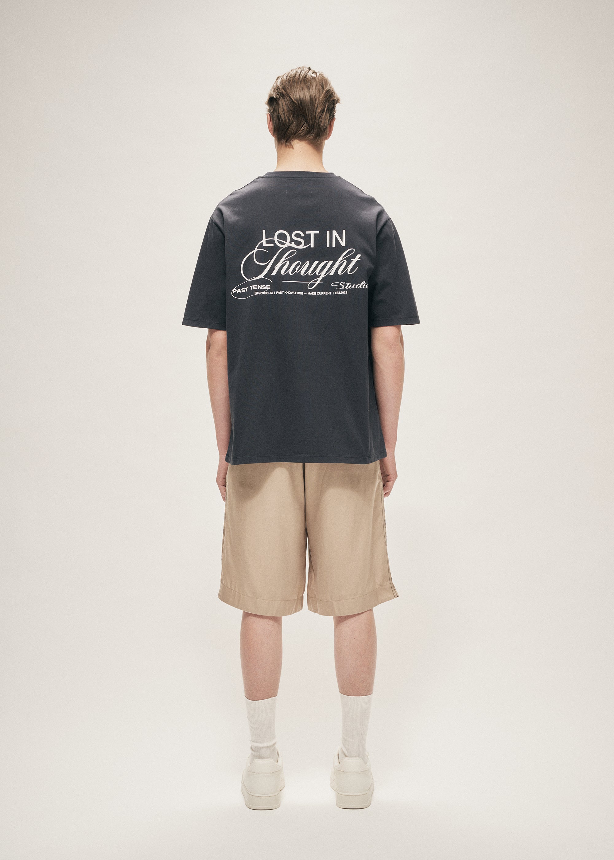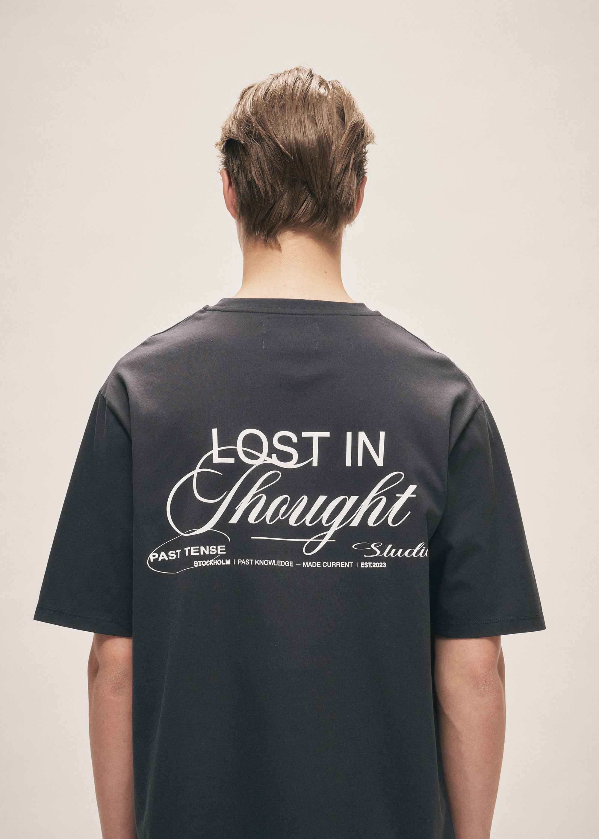 The Lost T-Shirt is crafted from a premium cotton ensuring a sharp look and soft touch. The relaxed fit is complemented with a boxy shape. The garment is finished with the brand's logo on the chest and a graphic text screen printed across the centre back.