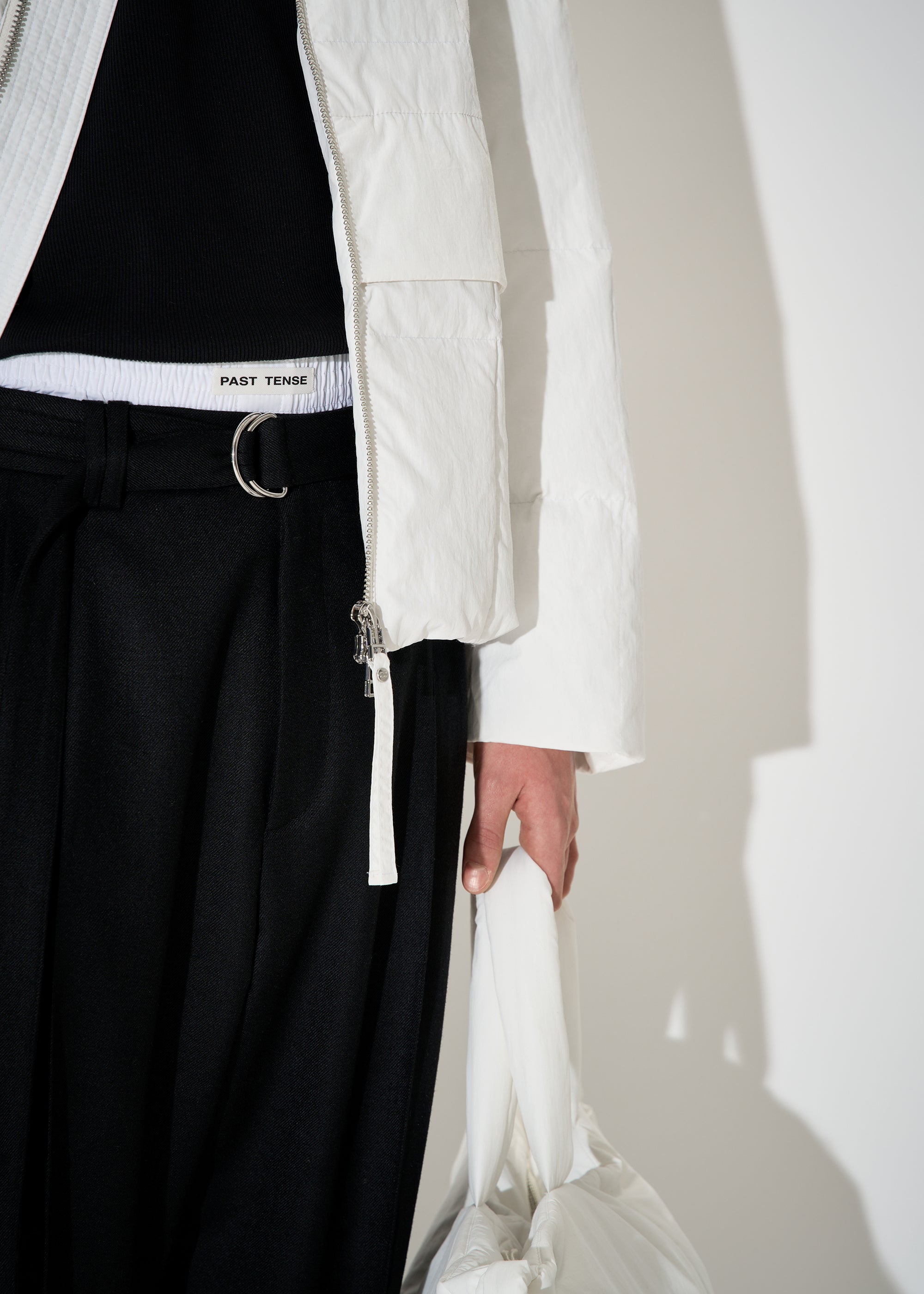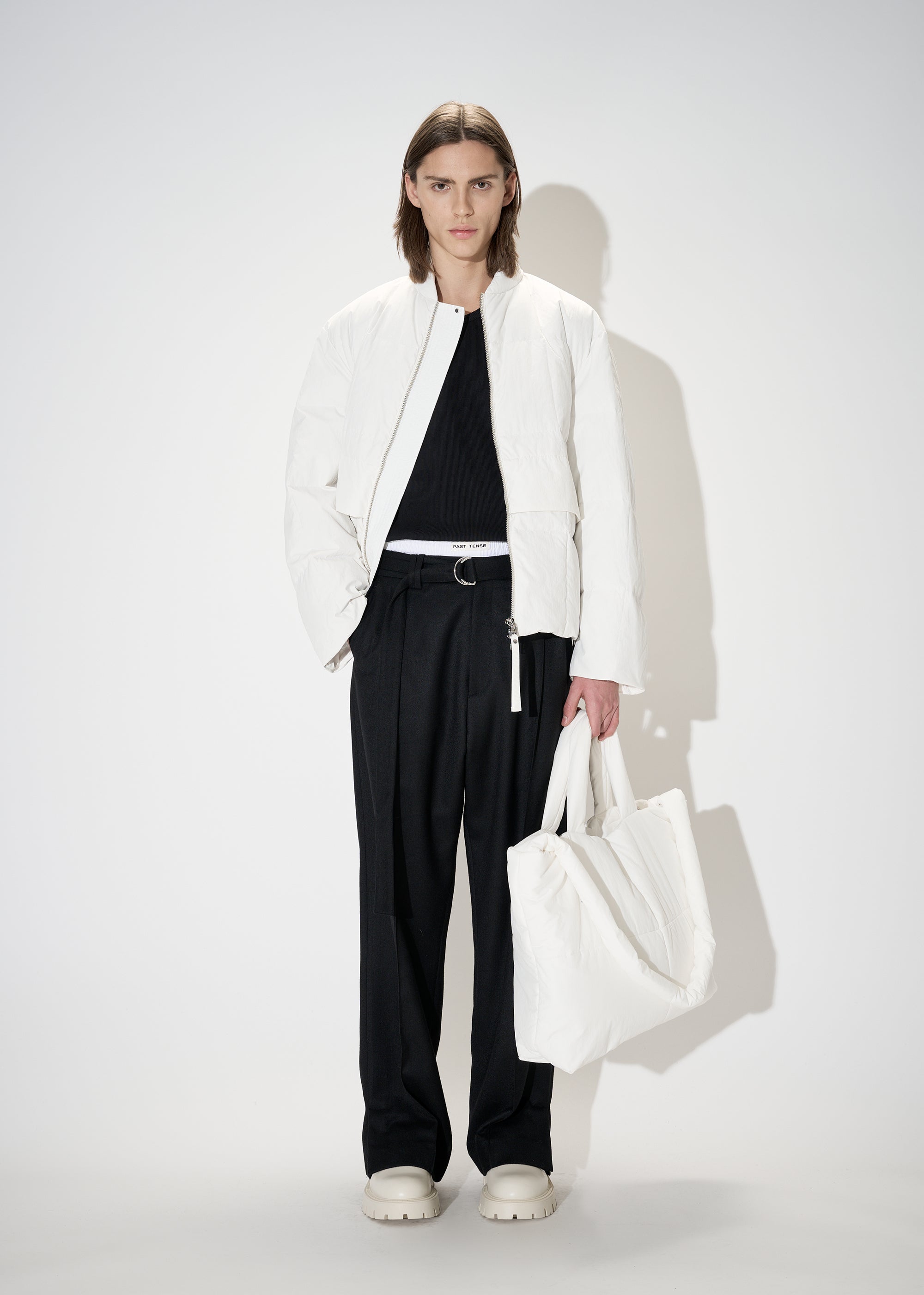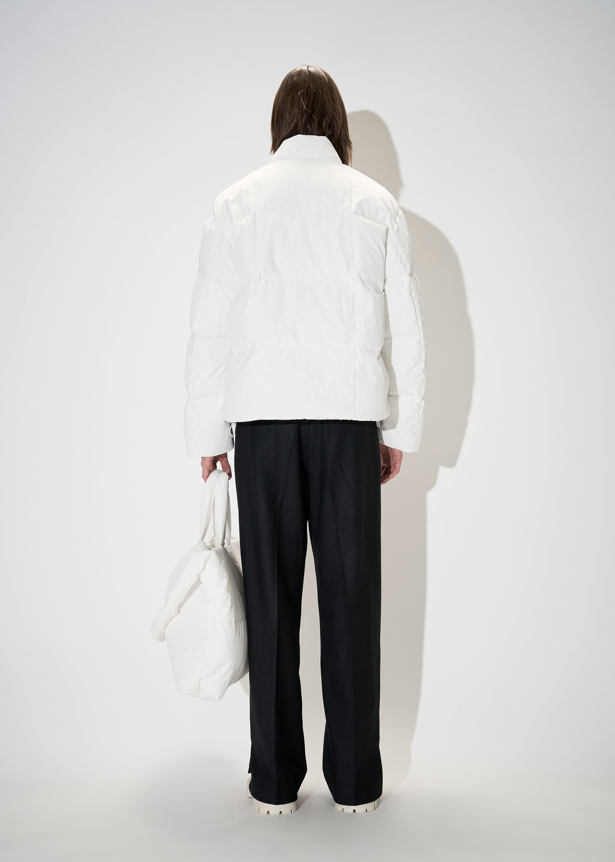 The Nylon Insulated Tote Bag is heavily padded for a puffy look and extra protection for your belongings. The nylon-cotton main fabric is finished with PFC-free water-repellent treatment to allow for harsh weather wear.