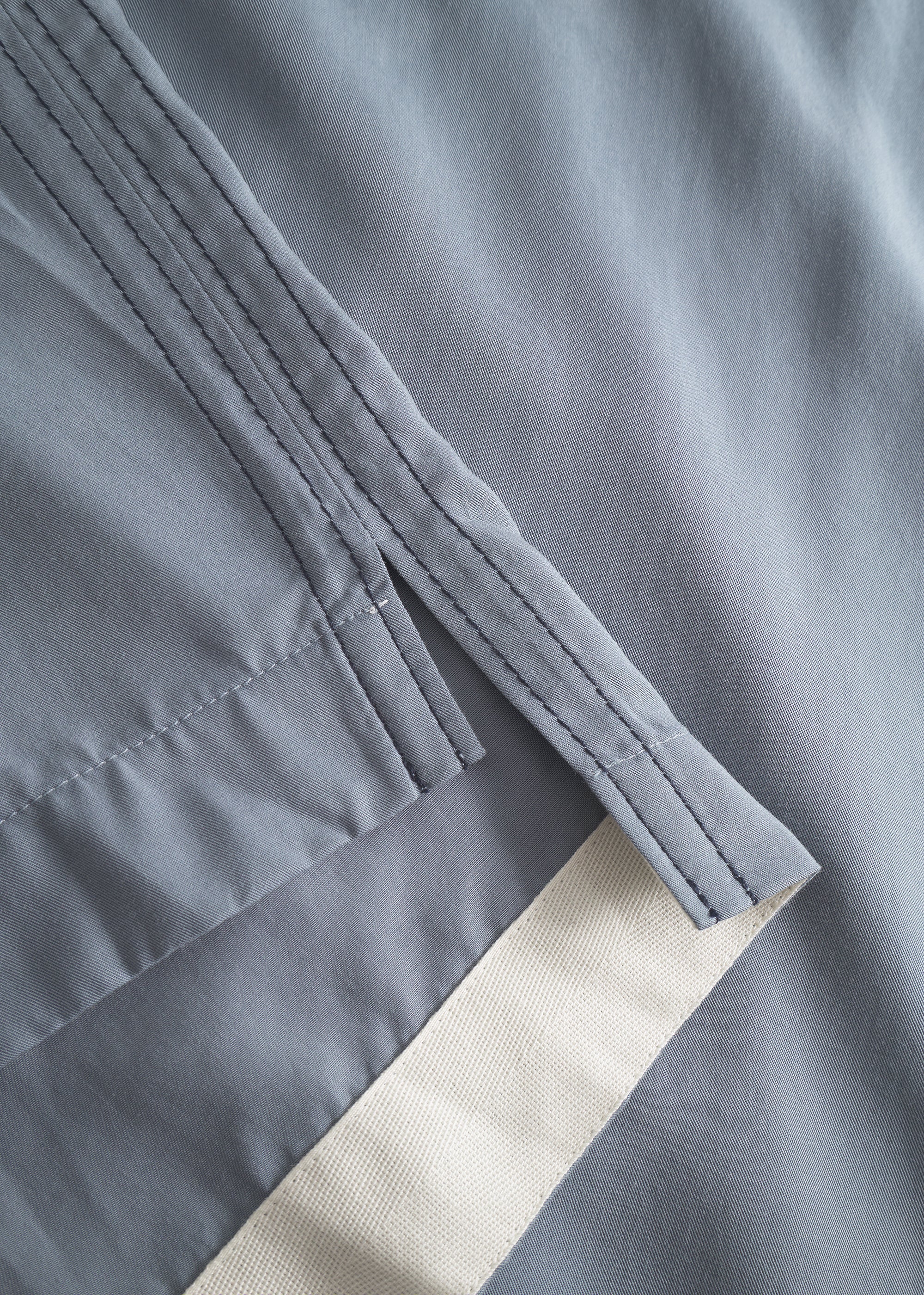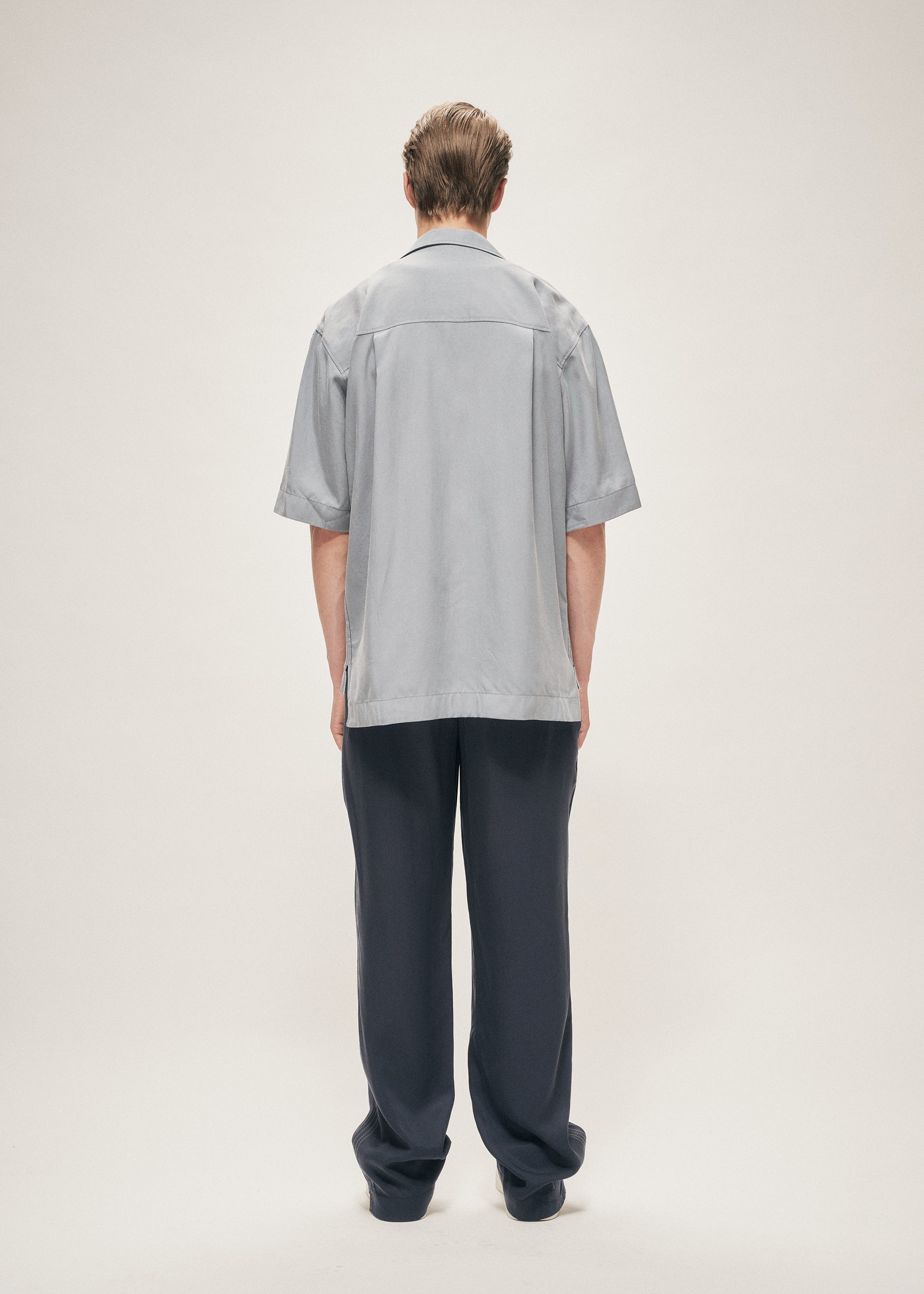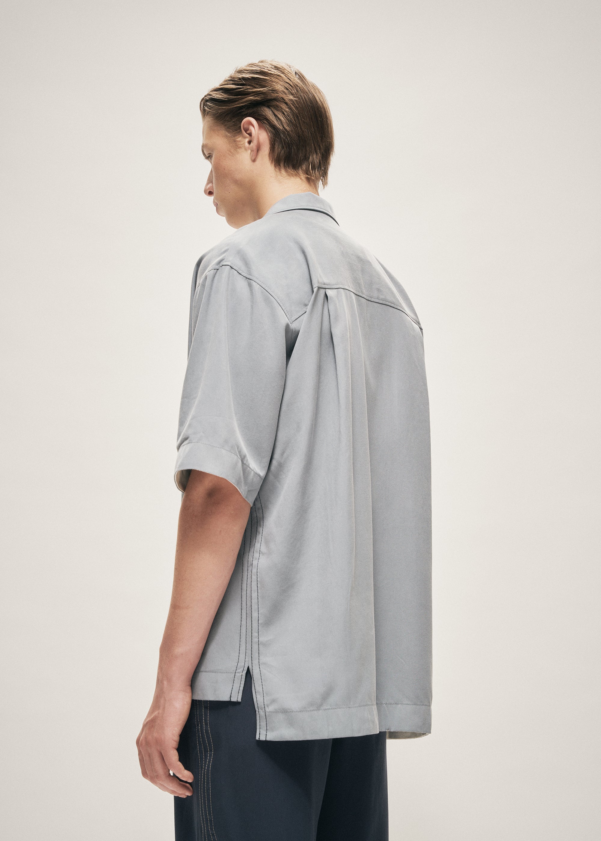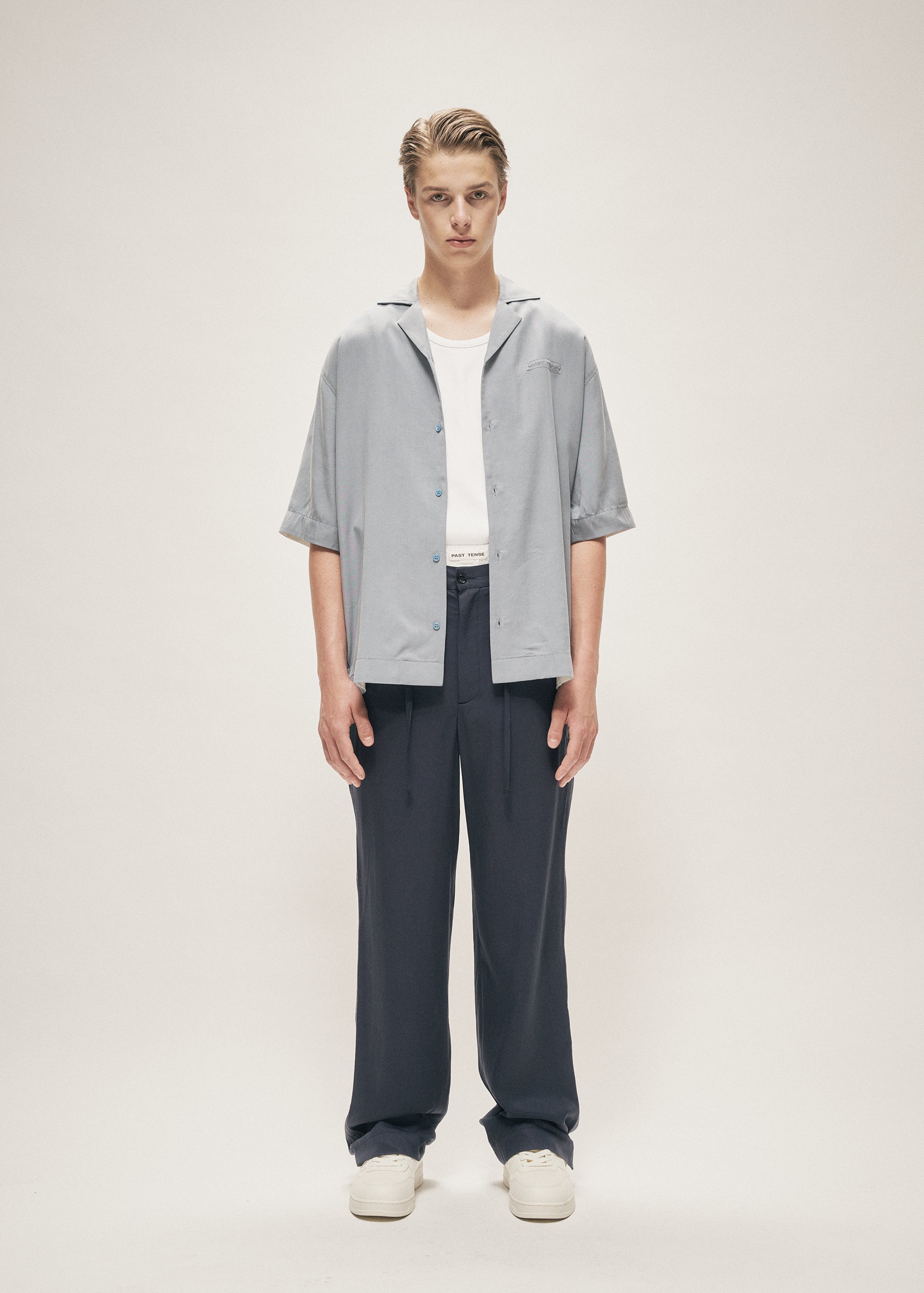 The Open Collar S/S Tencel Shirt is crafted from a lightweight Tencel® fabric ensuring comfortable wear and silky feel. The garment is finished with a contrast stitch side stripe detail and side slit at hem and finished with webbing details on inside. Logo embroidery patch fixed by metal rivets on the chest.