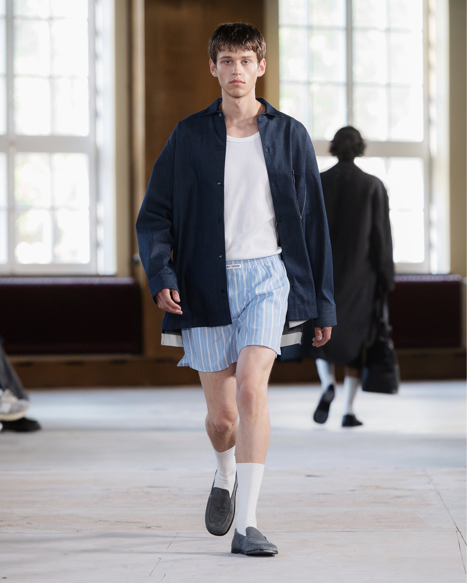 The Poplin Underwear Shorts is our take on modern leisure. Crafted from a lightweight poplin shirt fabric ensuring a crisp look and silky touch. The garment is finished with a fake fly and side pockets. The waist is elasticated for an easy wear.