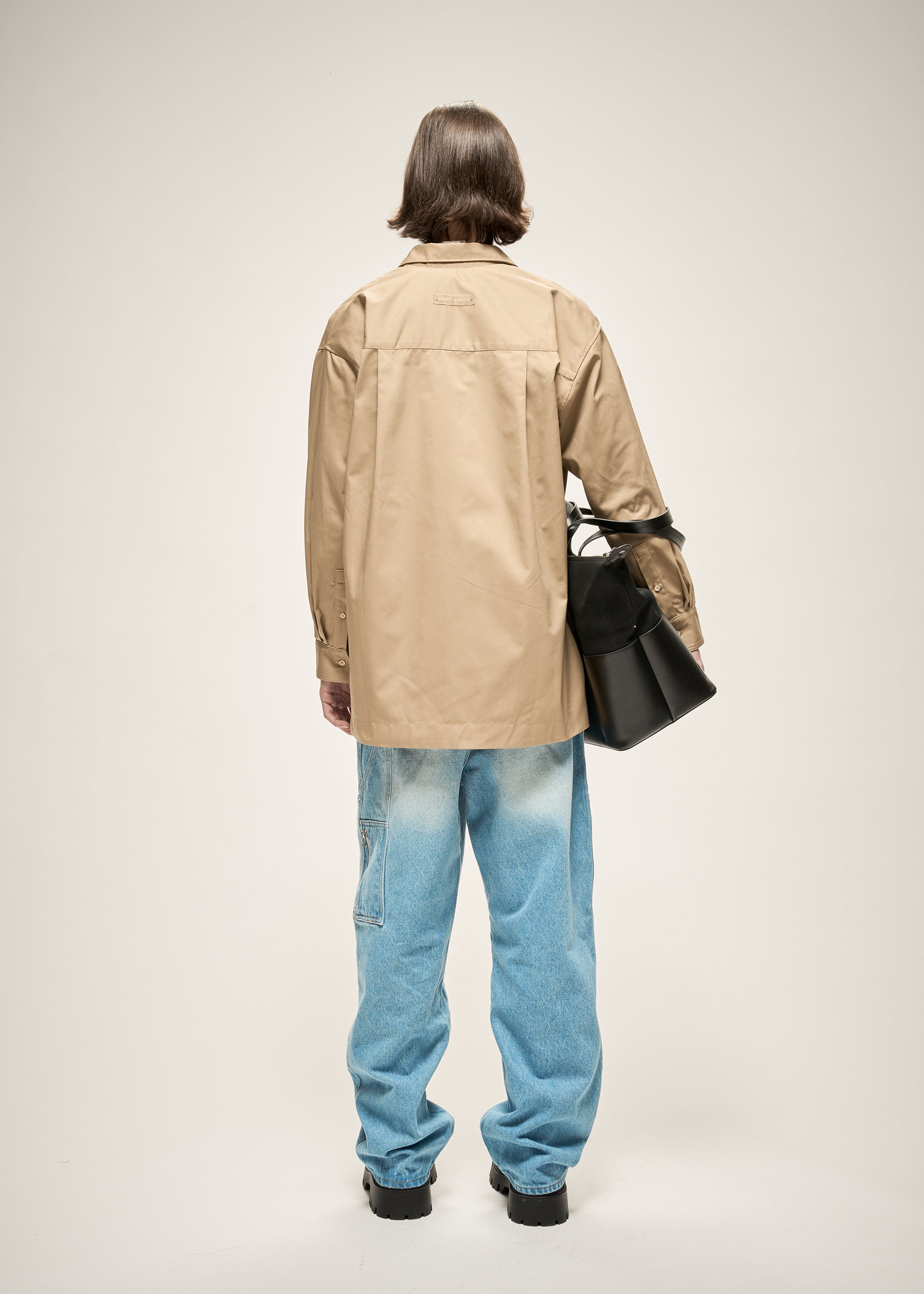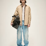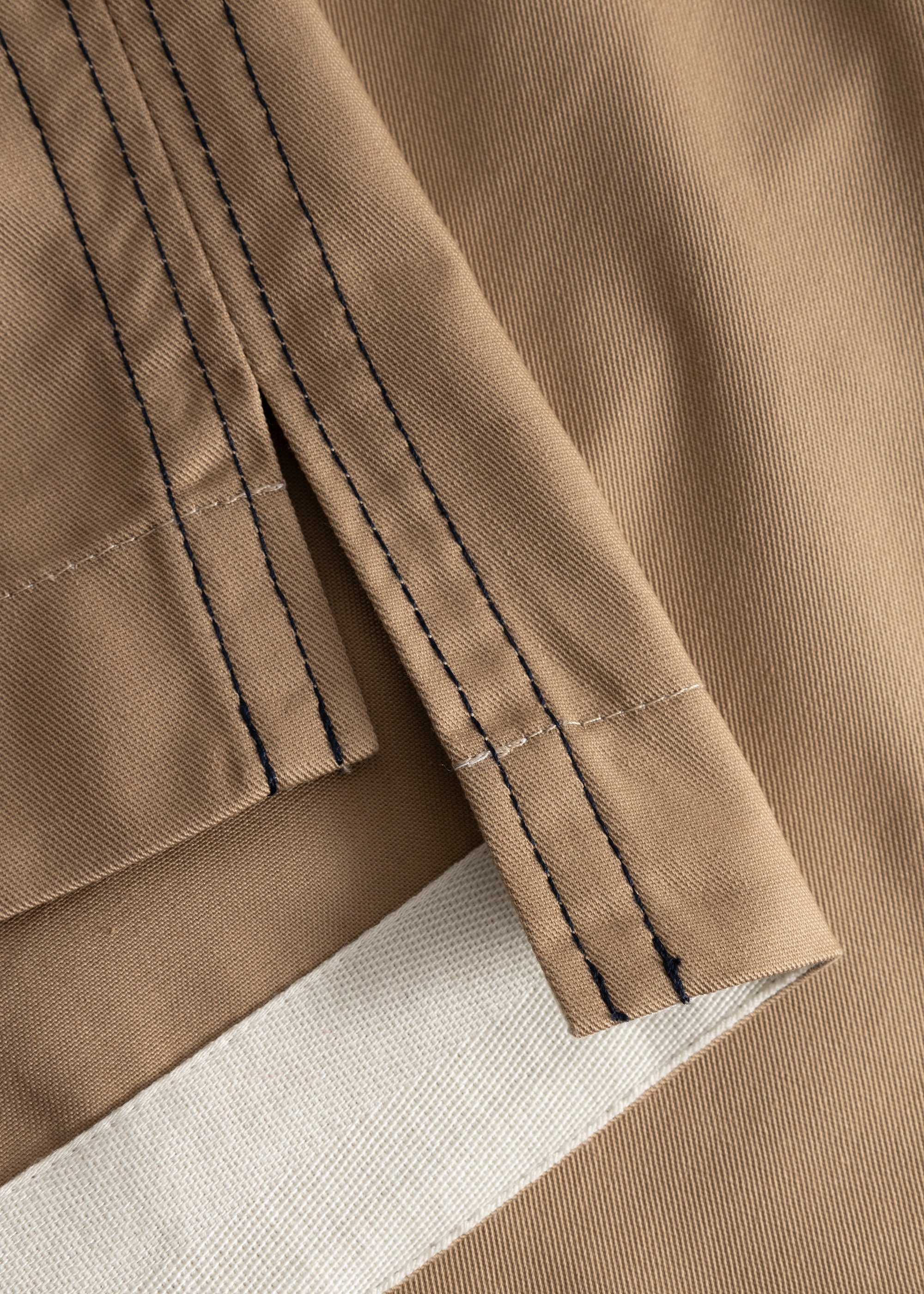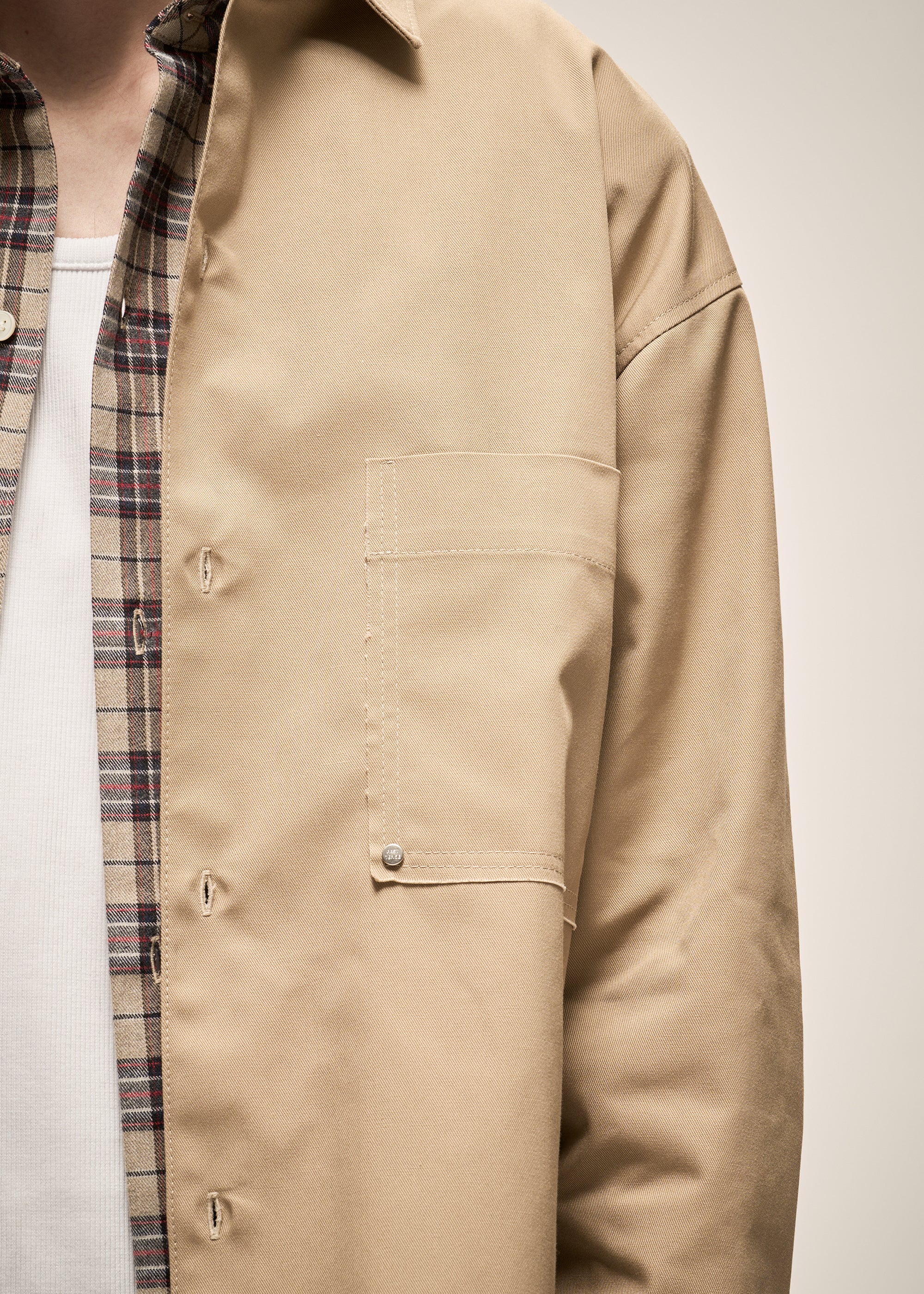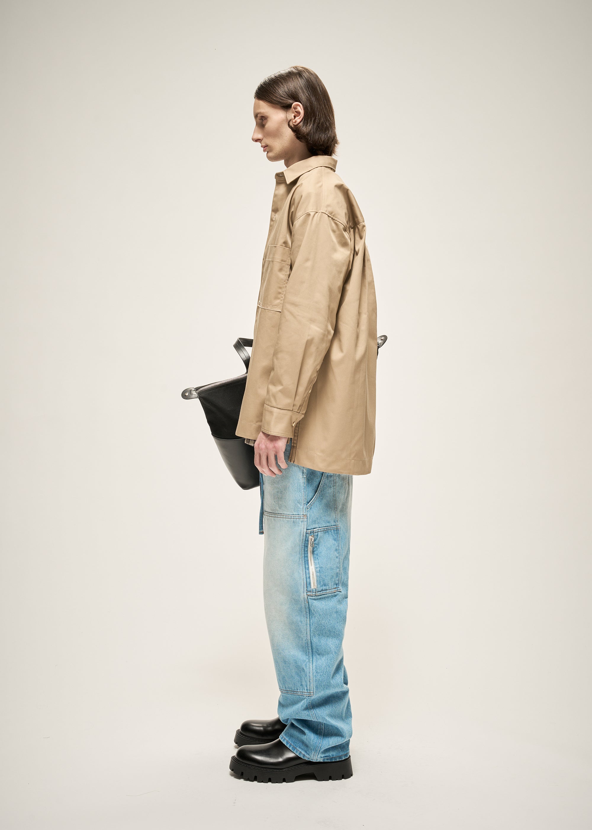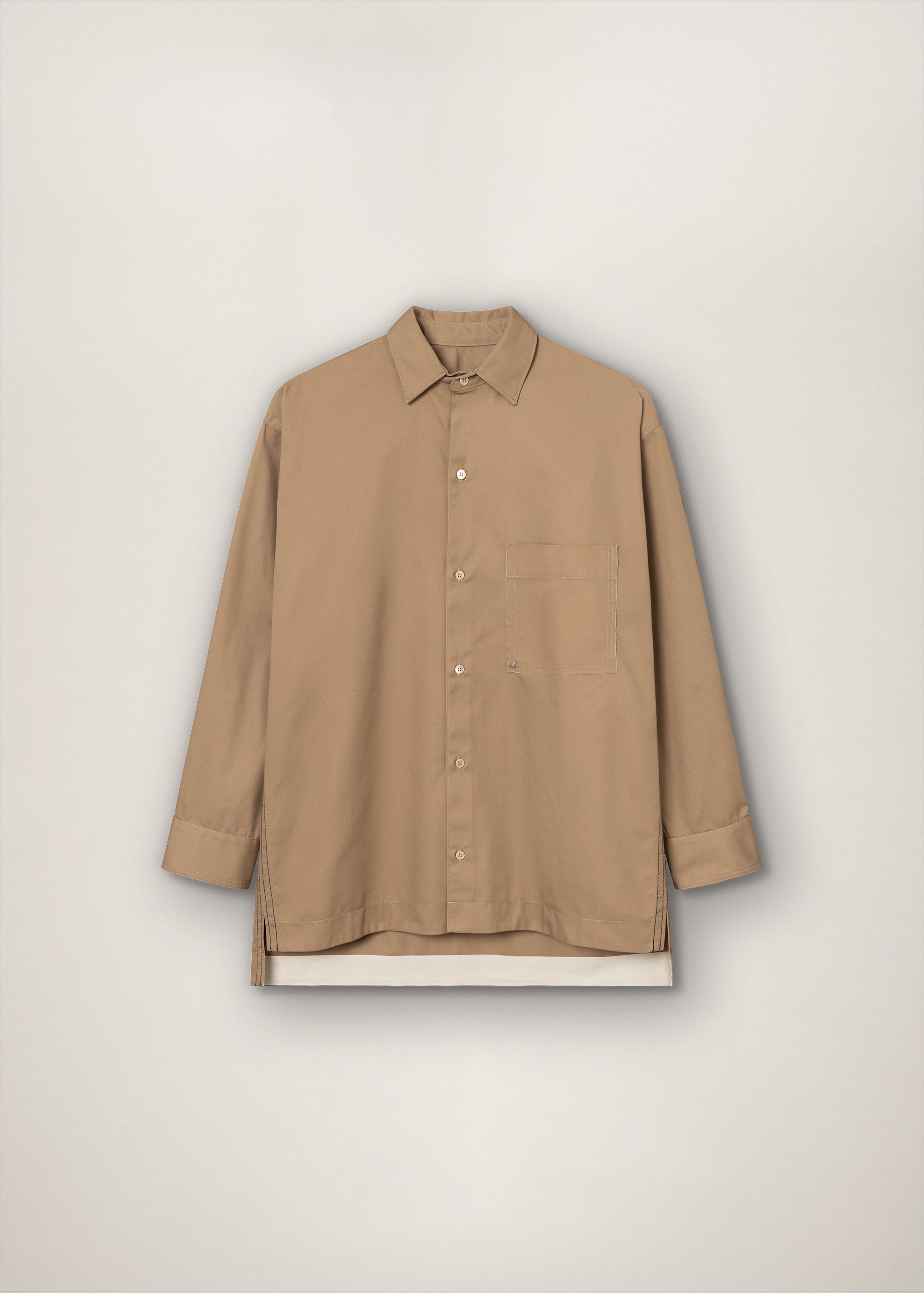 The Side Stripe Long Sleeve Reg Collar Shirt is crafted from a premium dry twill, ensuring durable wear and a sharp look. The garment is finished with a contrast stitch side stripe detail, side slit at hem and finished with webbing details on the inside. Raw cut chest pocket with a branded metal rivet in the corner and a logo embroidery patch fixed by metal rivets at the back neck.