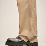 The Side Stripe Wide Leg Drawstring Trousers are crafted from a premium dry twill, ensuring durable wear and a sharp look. The garment is finished with a contrast stitch side stripe detail, side slit at the cuffs and finished with webbing details on the inside. The elasticated waist at the back and adjustable drawstring at the waist allow for comfortable wear.