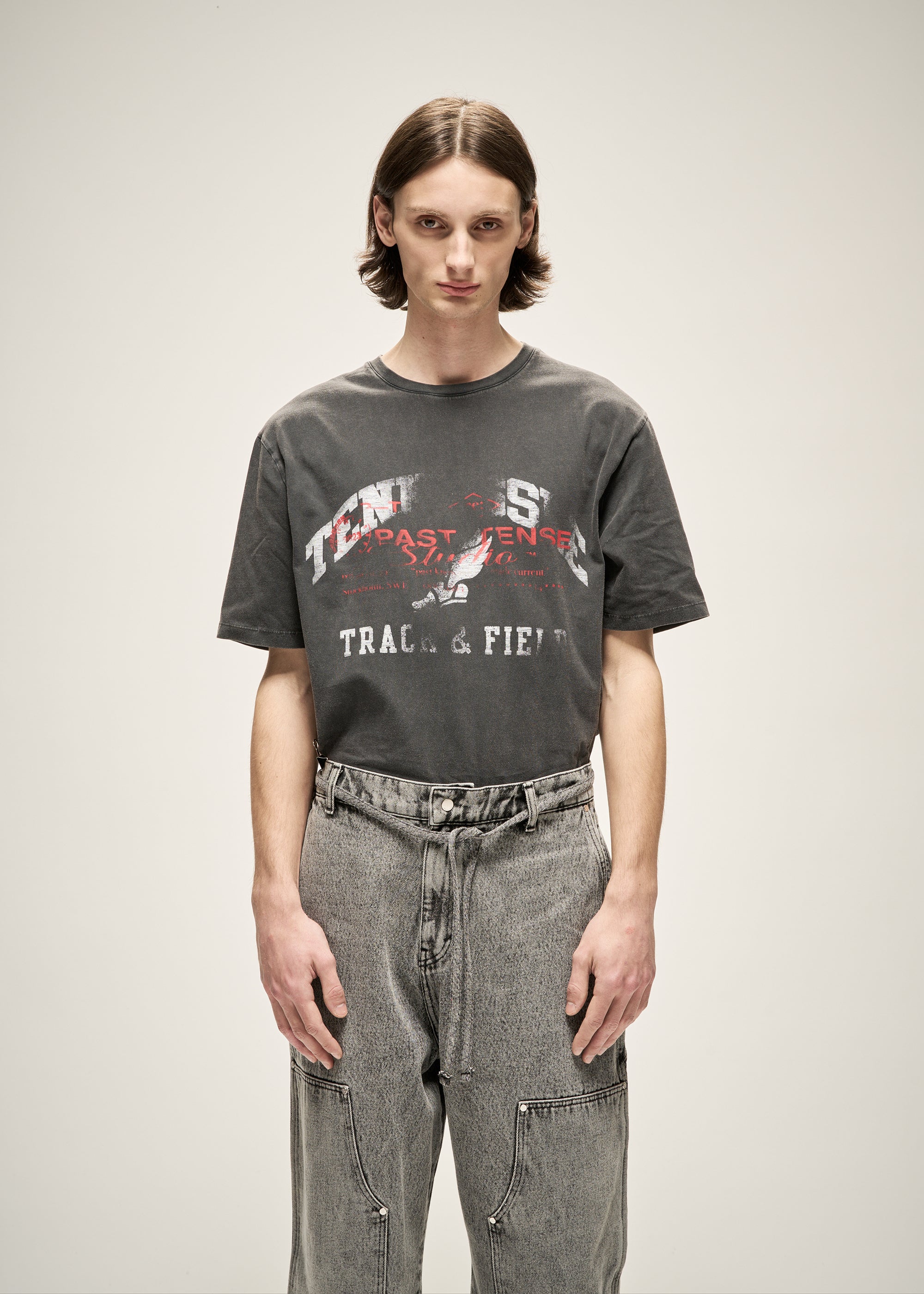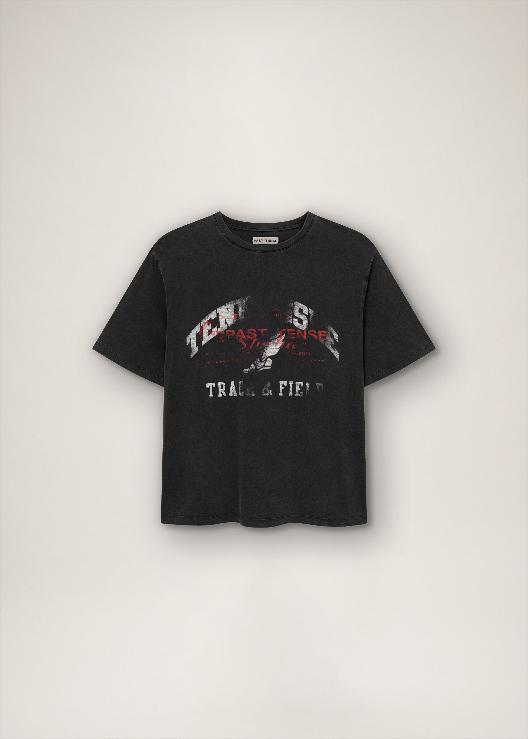 The Track and Field T-Shirt is crafted from a premium cotton, ensuring a sharp look and soft touch. The relaxed fit is complemented by a boxy shape. The garment is finished with a special wash and a large logo screen printed across the centre front.