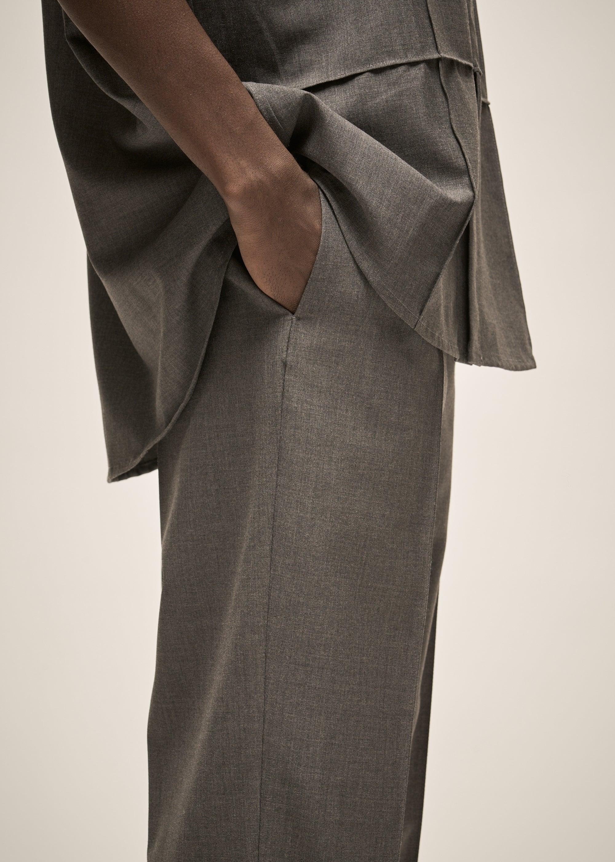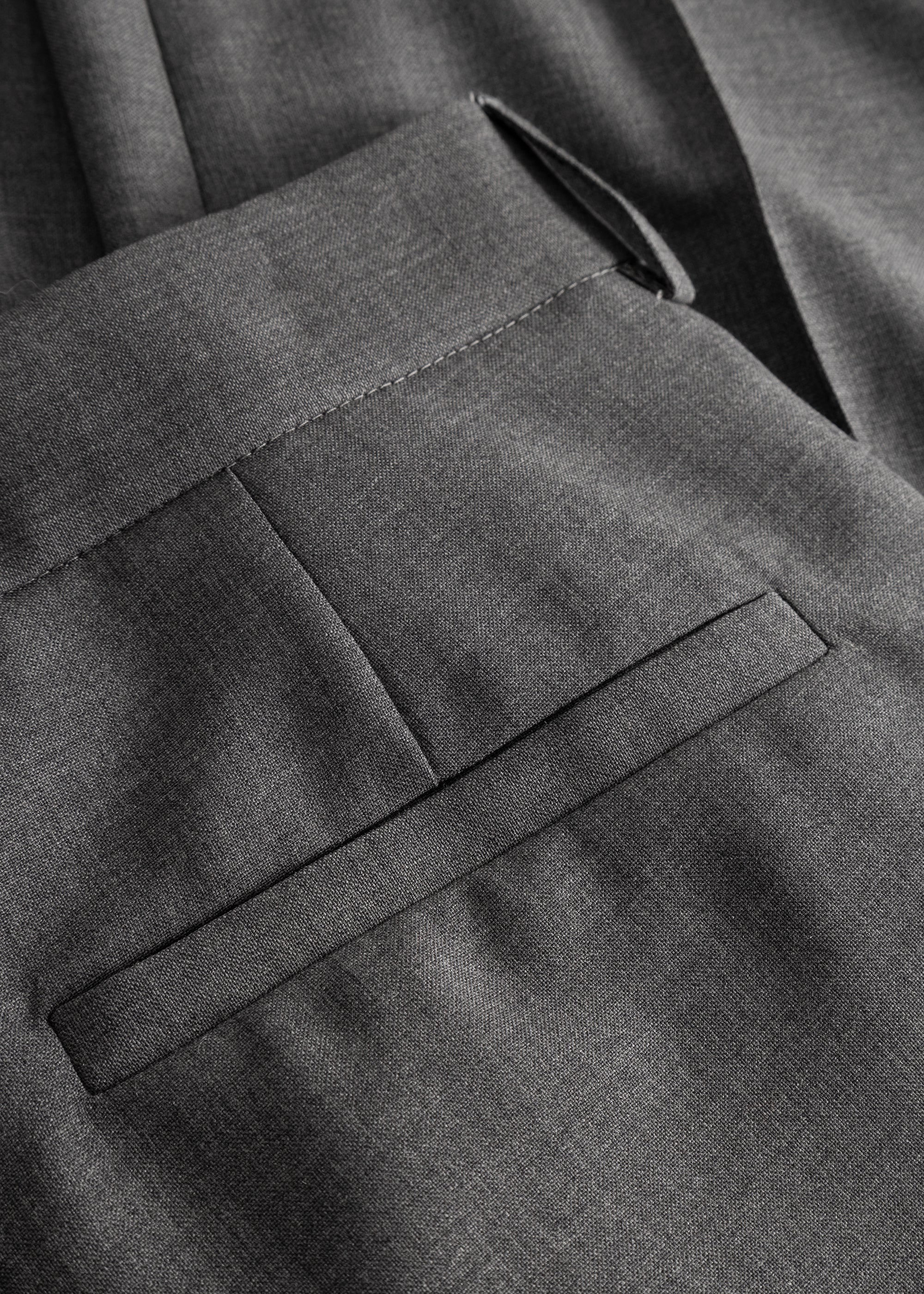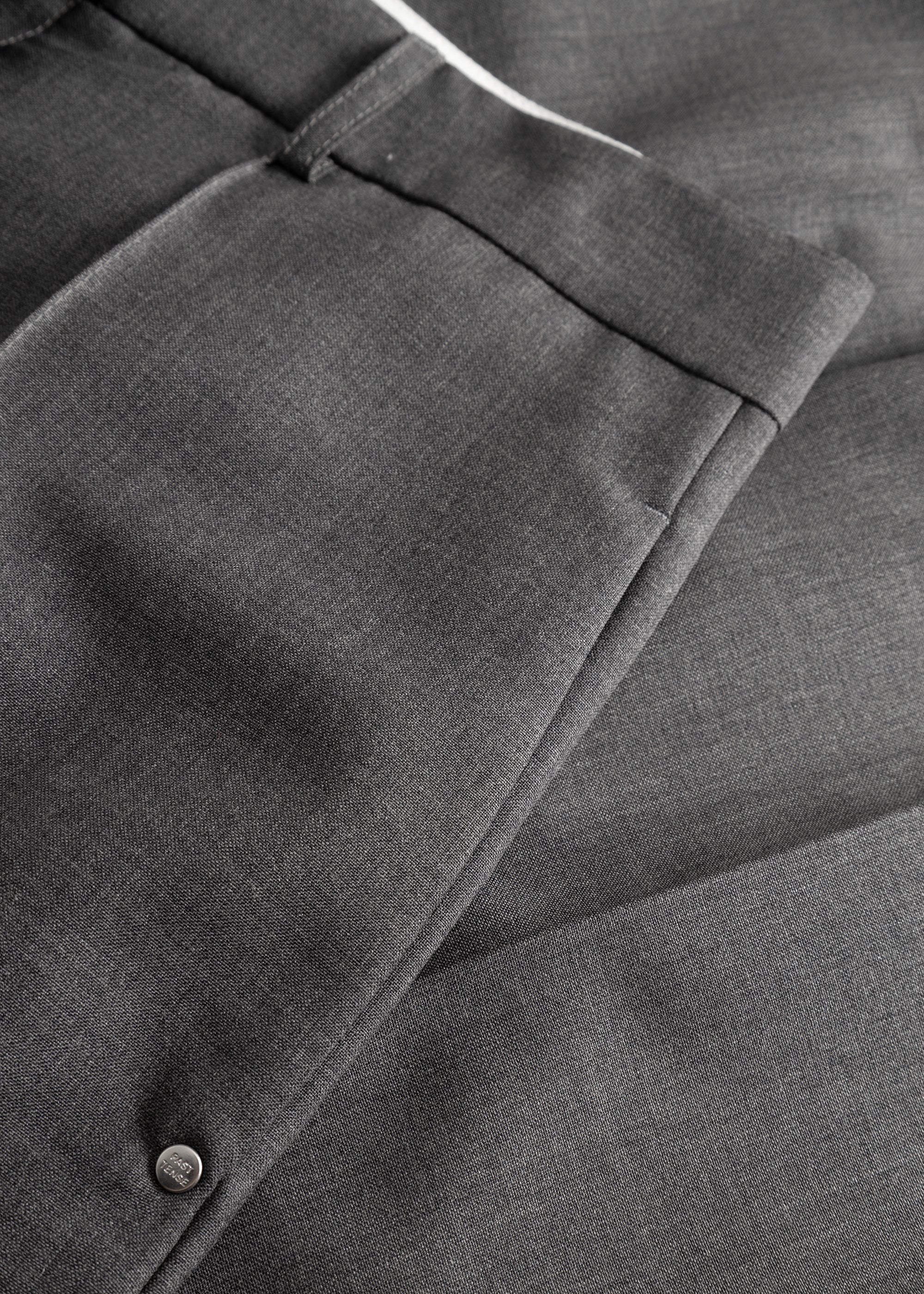 The Tropical Wool Regular Fit Wool Trousers are crafted from a Portuguese lightweight wool blend fabric to ensure a crisp look and maximum comfort during wear. The inside is finished with a constructed waistline, piping details and half-lined legs for better longevity and comfort. Branded rivet on the left pocket.