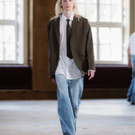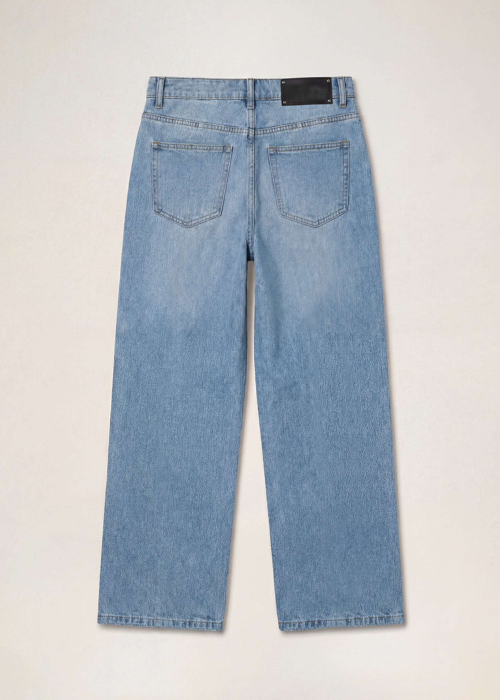 The Wide Leg Front Cut Jeans are crafted from raw Denim and washed with care, ensuring durable wear and a distressed look. The Jeans are finished with a front pleat and a genuine leather patch at the back.