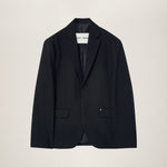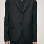 The Wool Tailored Jacket is crafted from a Portuguese wool blend fabric to ensure a crisp look and maximum comfort during wear. The look is enhanced with crispy pleated sleeves and buttonless cuffs together with a concealed two-button front closure. Branded rivet on the left flap pocket.